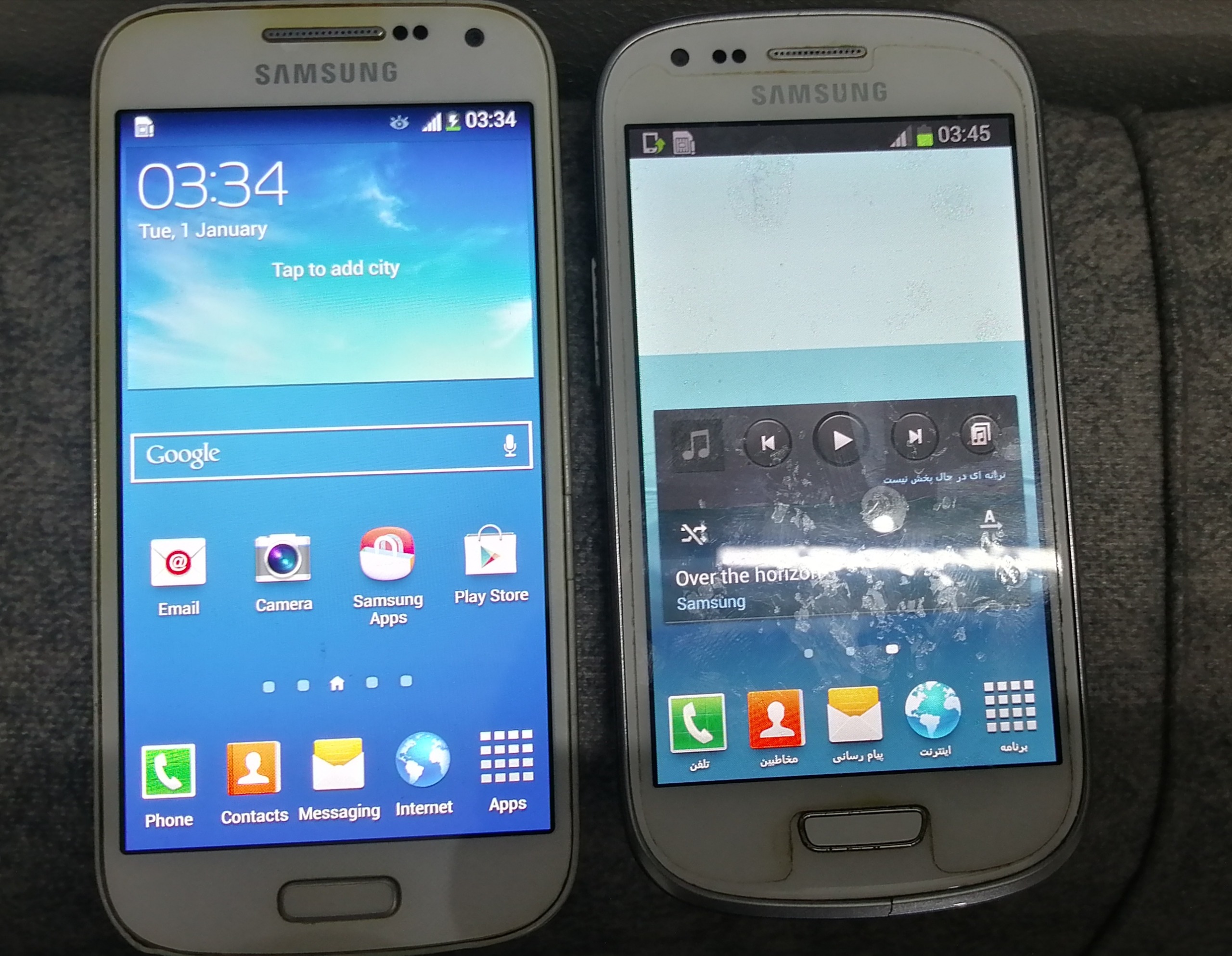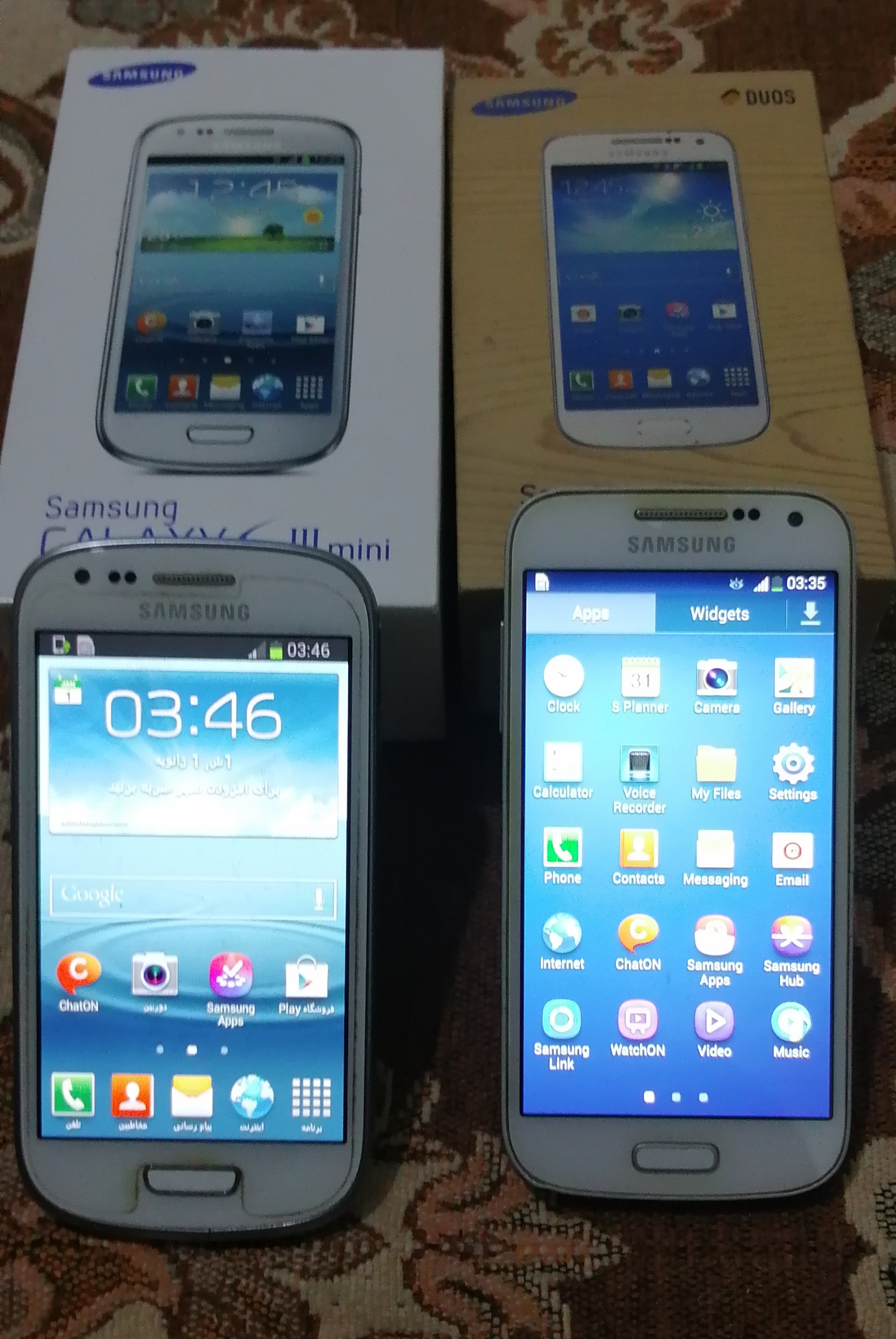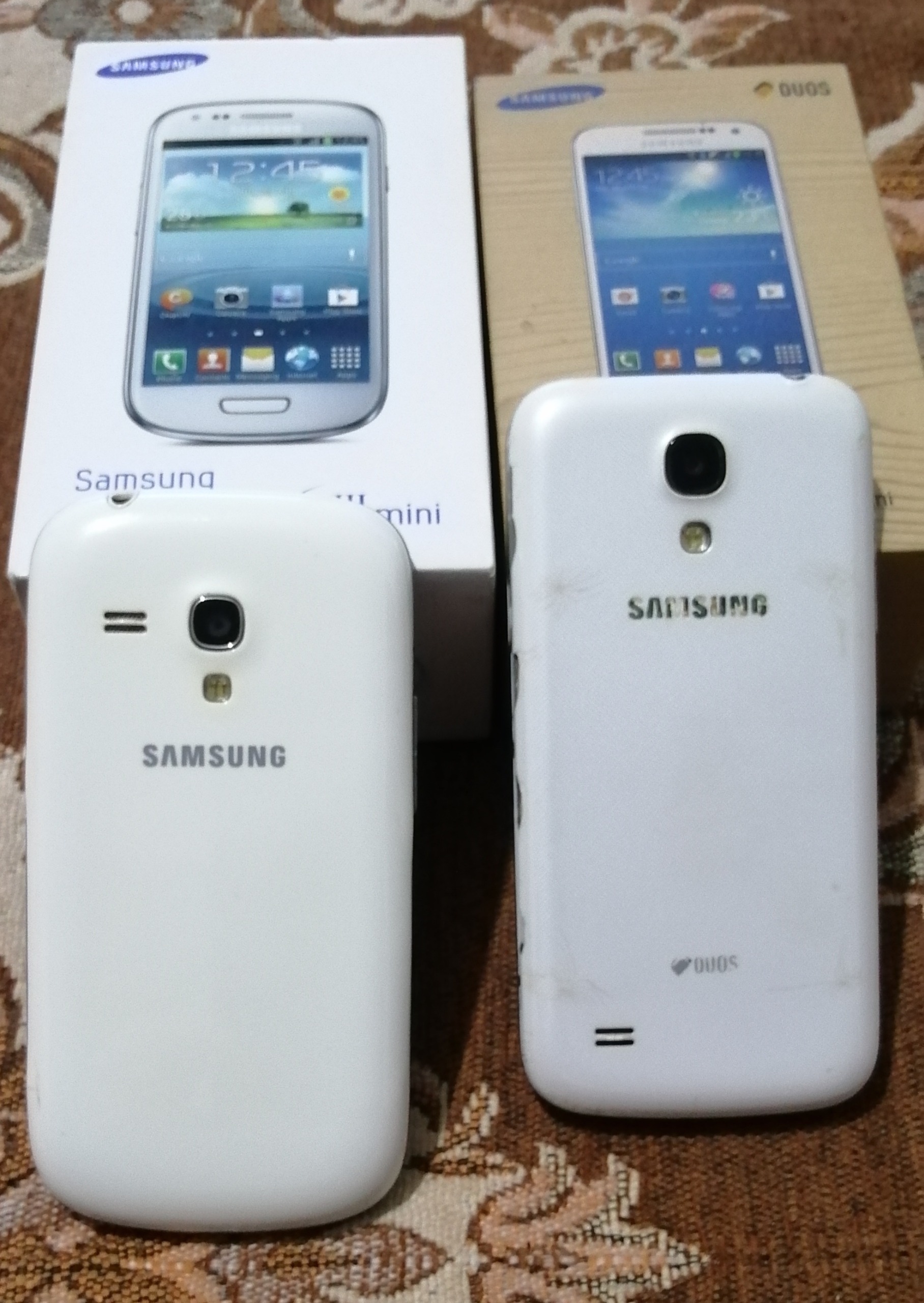 دو عدد گوشی سامسونگ سالم سالم با کارتن باتری ضعیف بدون هیچ مشکلی بجز باتریش.