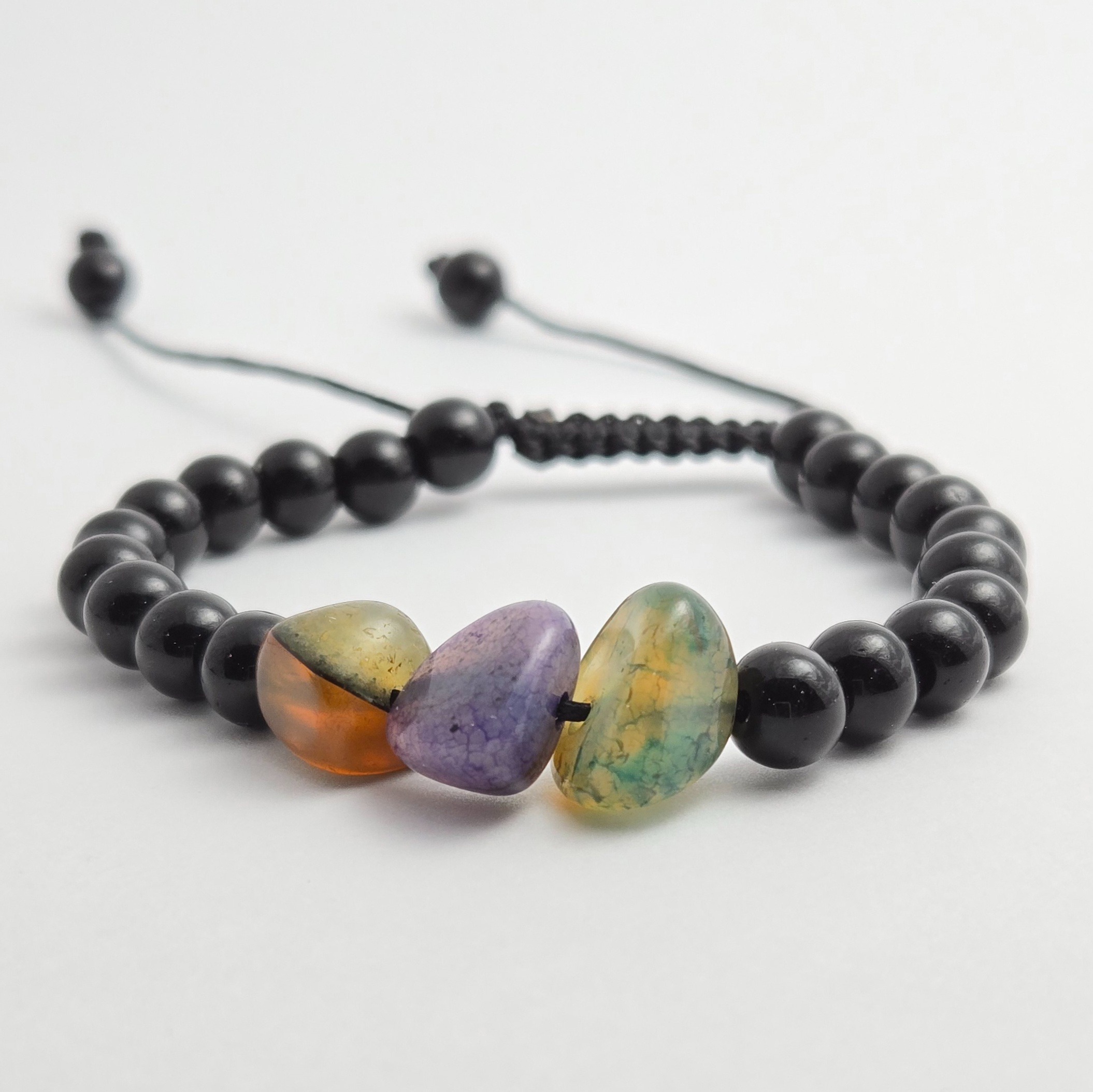 دستبند سنگی آمورف با مهره های سنگی عقیق برزیلی معدنی