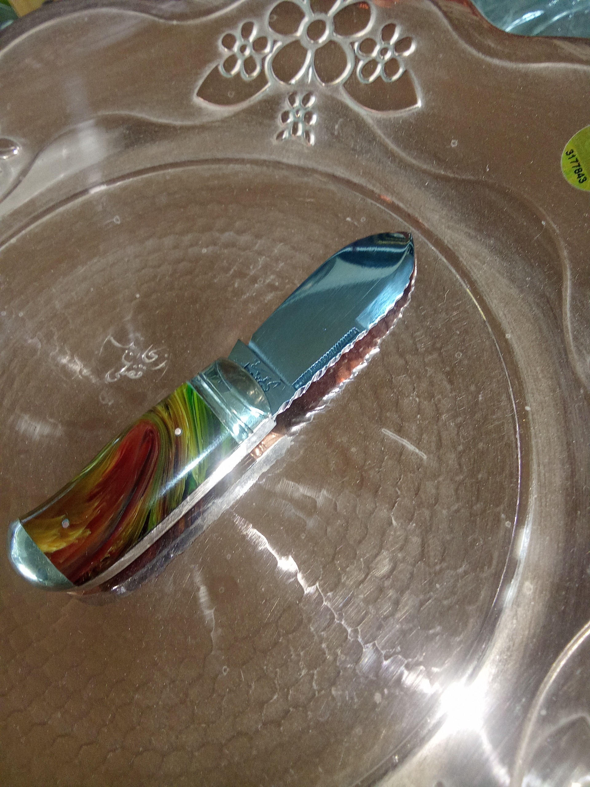 چاقو کلکسیونی وسفارشی مینیاتوری تپل دسته کهربا وباربندورشو وتیغه کنس آتشکاری وابدیده وتیزوبرا تضمینی کاراستادرحیم شعبانی فنر قوی بازوبست بصورت شلاقی کارمیکند سایز یک 14سانت میباشد به قیمت 1900وسایز دو16سانت بقیمت2300تومان نیز موجود میباشد