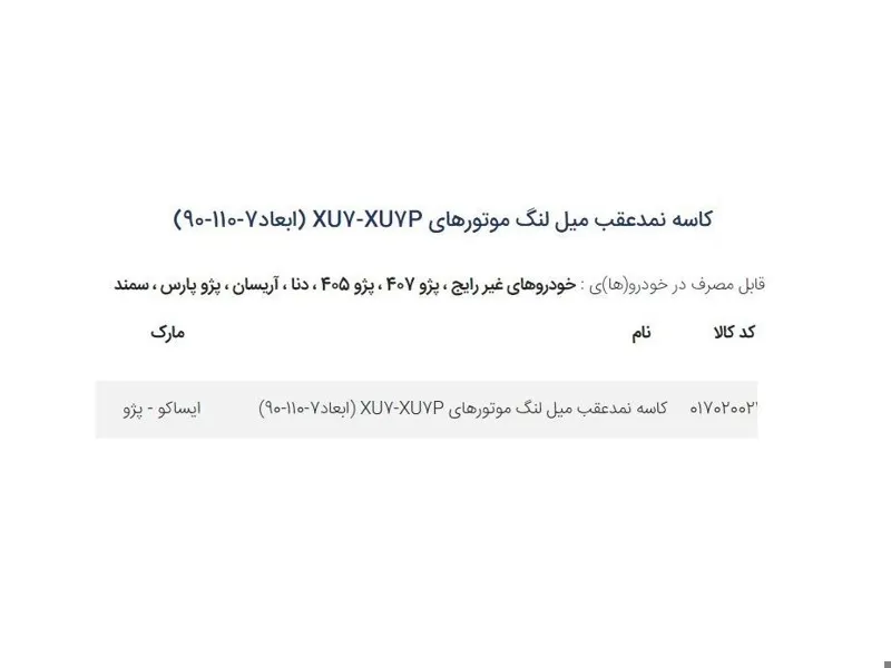 قابل مصرف در خودروهای : پژو 407 ، پژو 405 ، دنا ، آریسان ، پژو پارس ، سمند