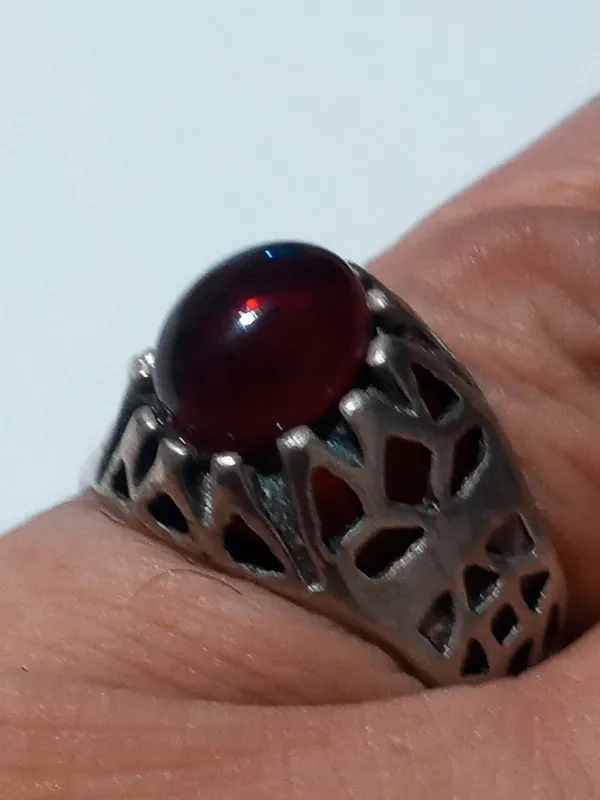 انگشتر یاقوت بسیار مرغوب قرمز با روکش نقره