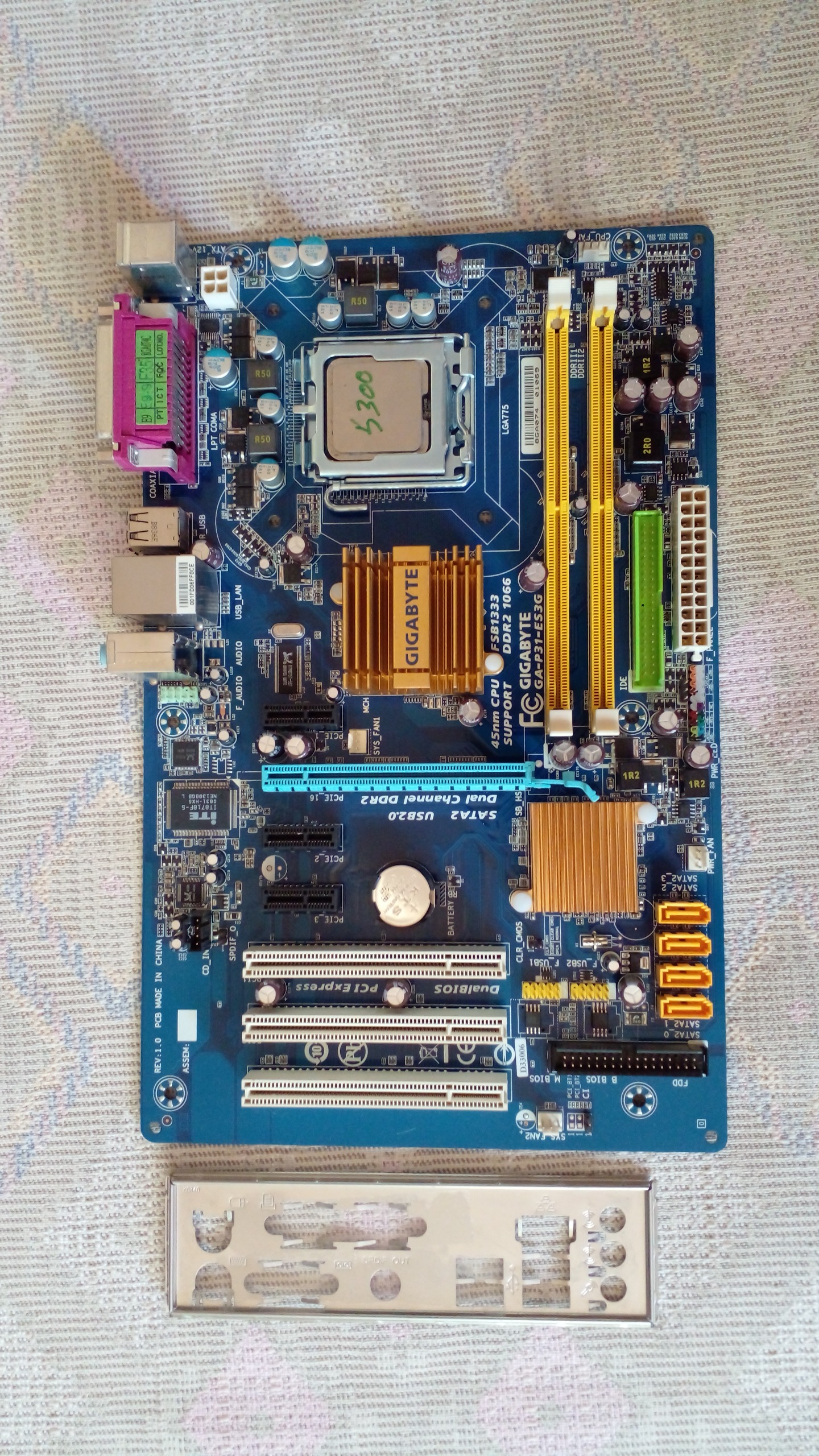 مادربرد به فن و پنل پشتی با cpu E5300