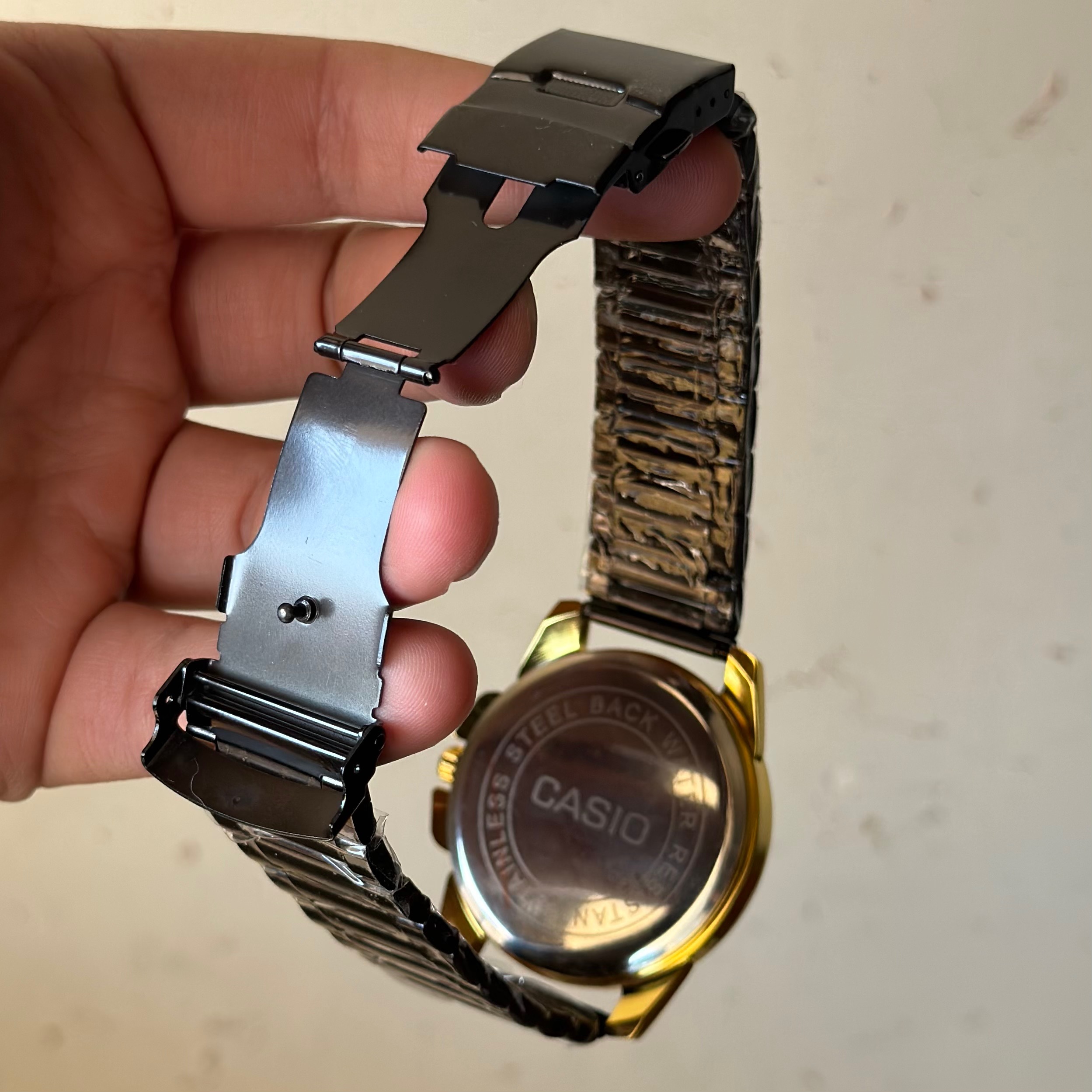 ساعت کاسیو صفحه مشکی قاب طلایی بند فلزی مشکی بسیار جذاب