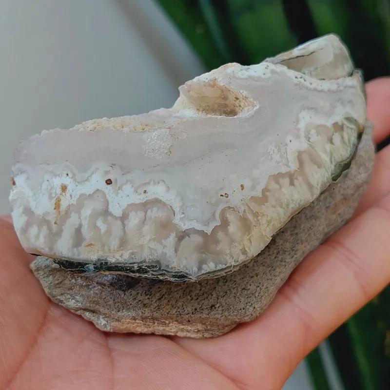 سنگ کلکسیونی عقیق شجر برفی پولیش شده با پایه سنگی
