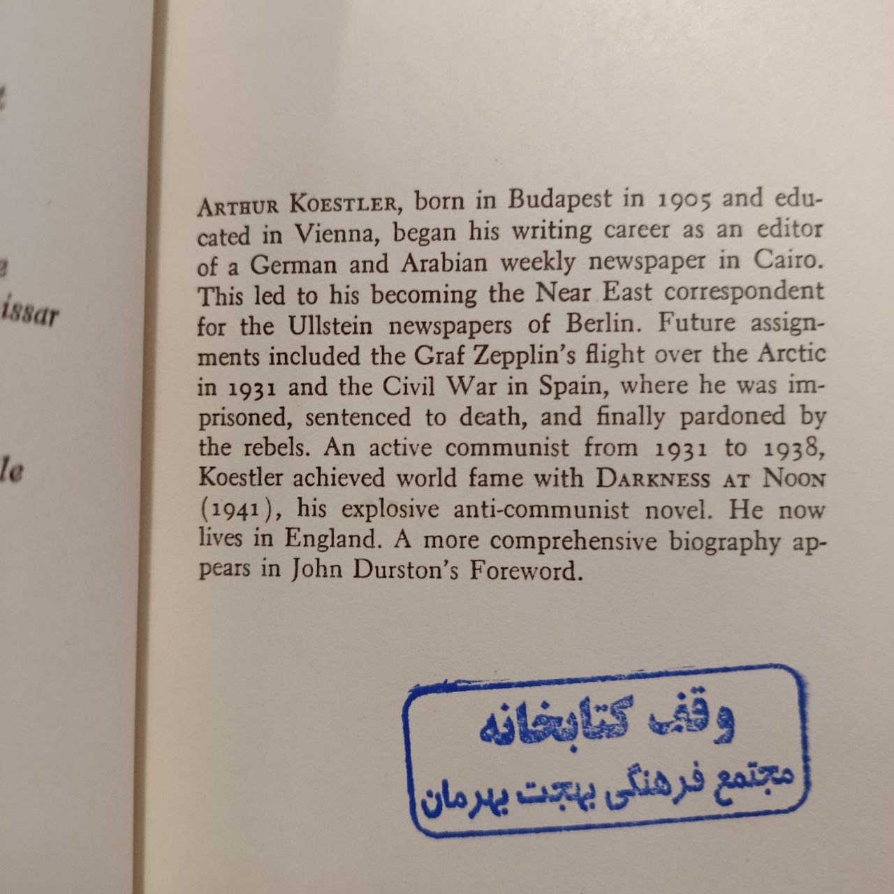 · کتاب معروف او "Darkness at Noon" (تاریکی در نیمروز) از شاهکارهای ادبیات سیاسی قرن بیستم محسوب میشود