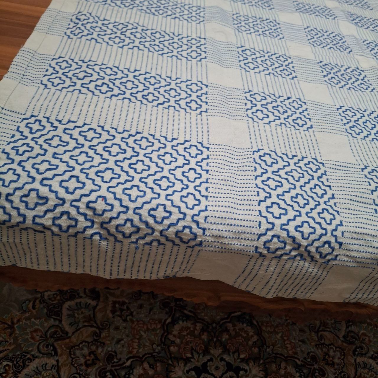 رومیزی قدیمی گلدوزی کار دست مارک دار ساخت پاکستان