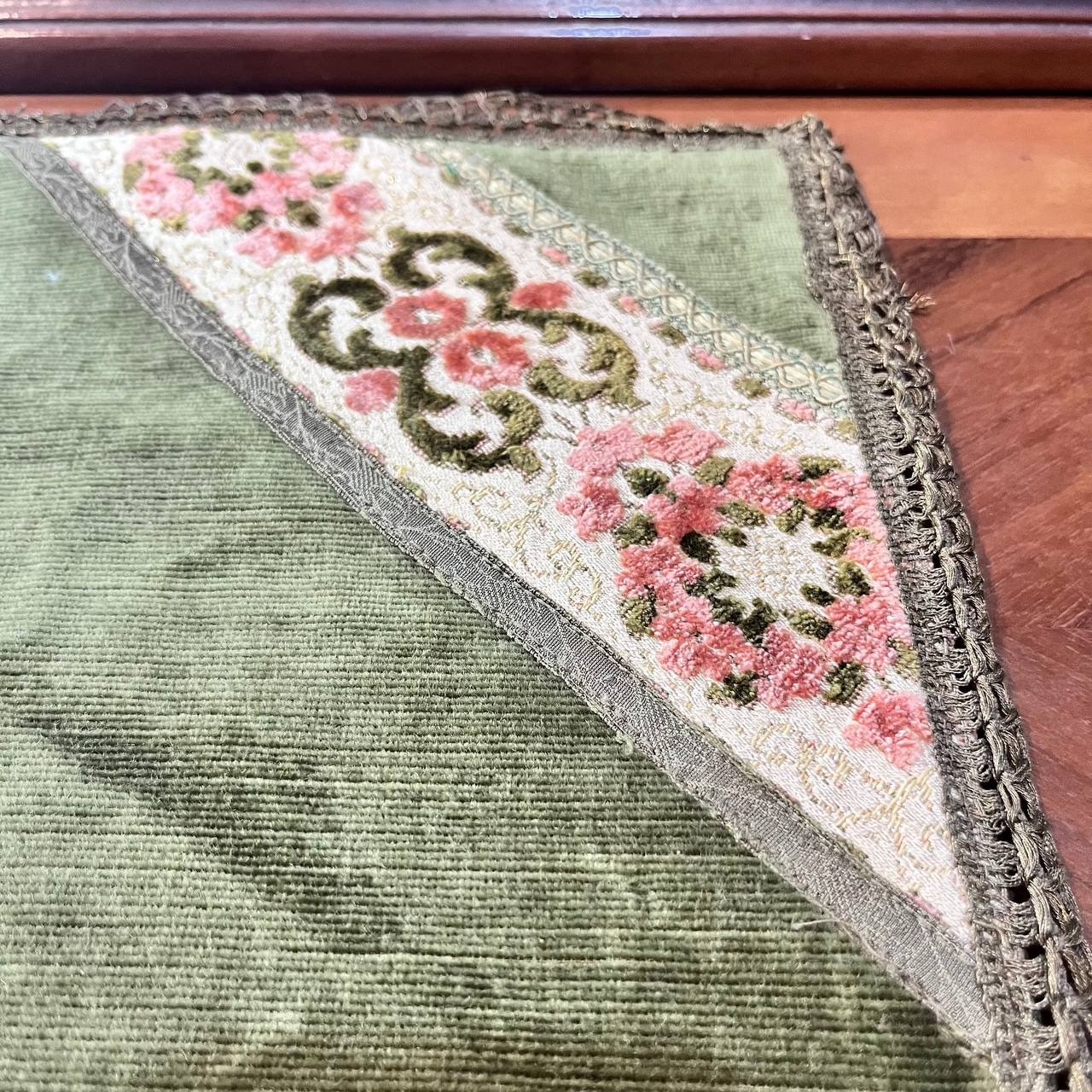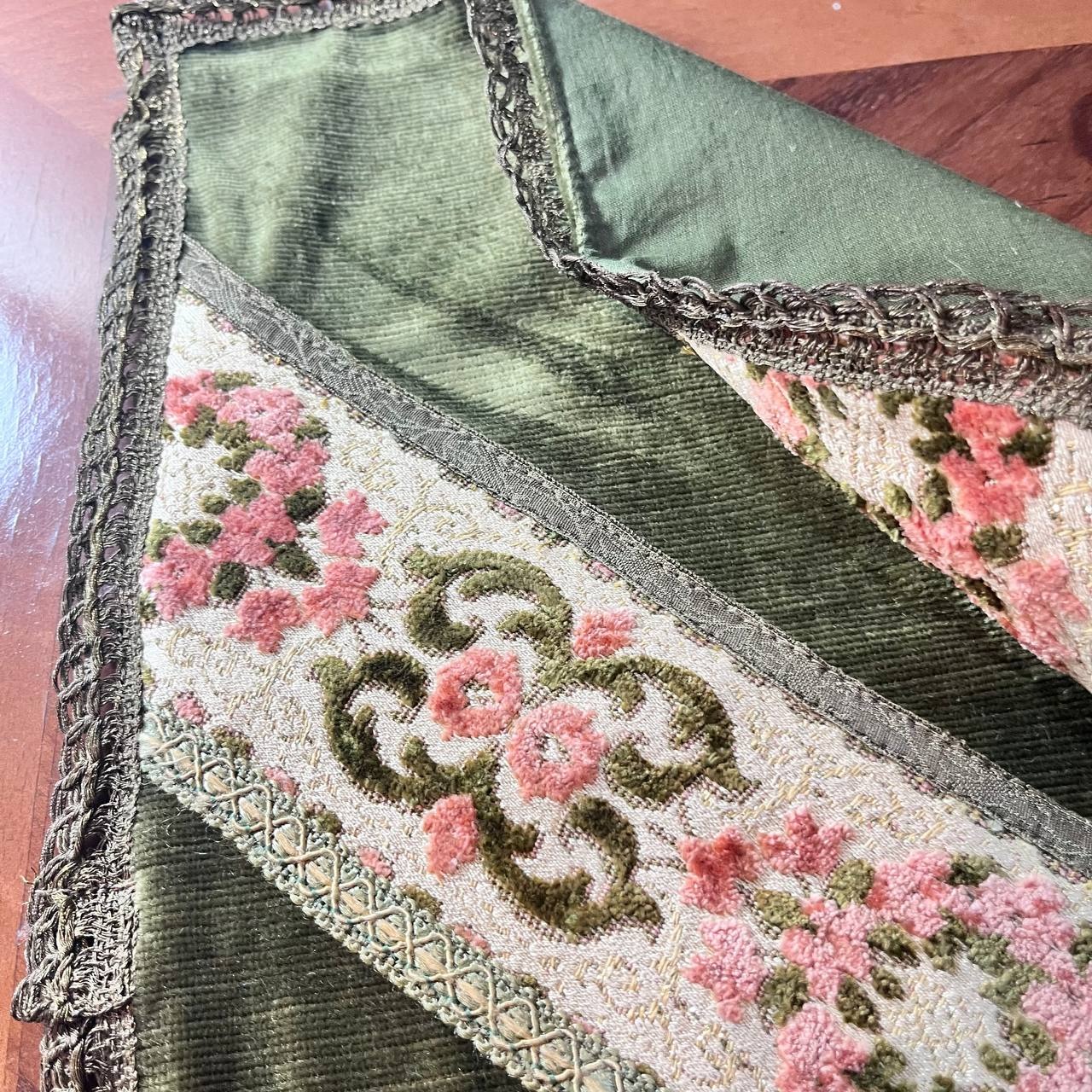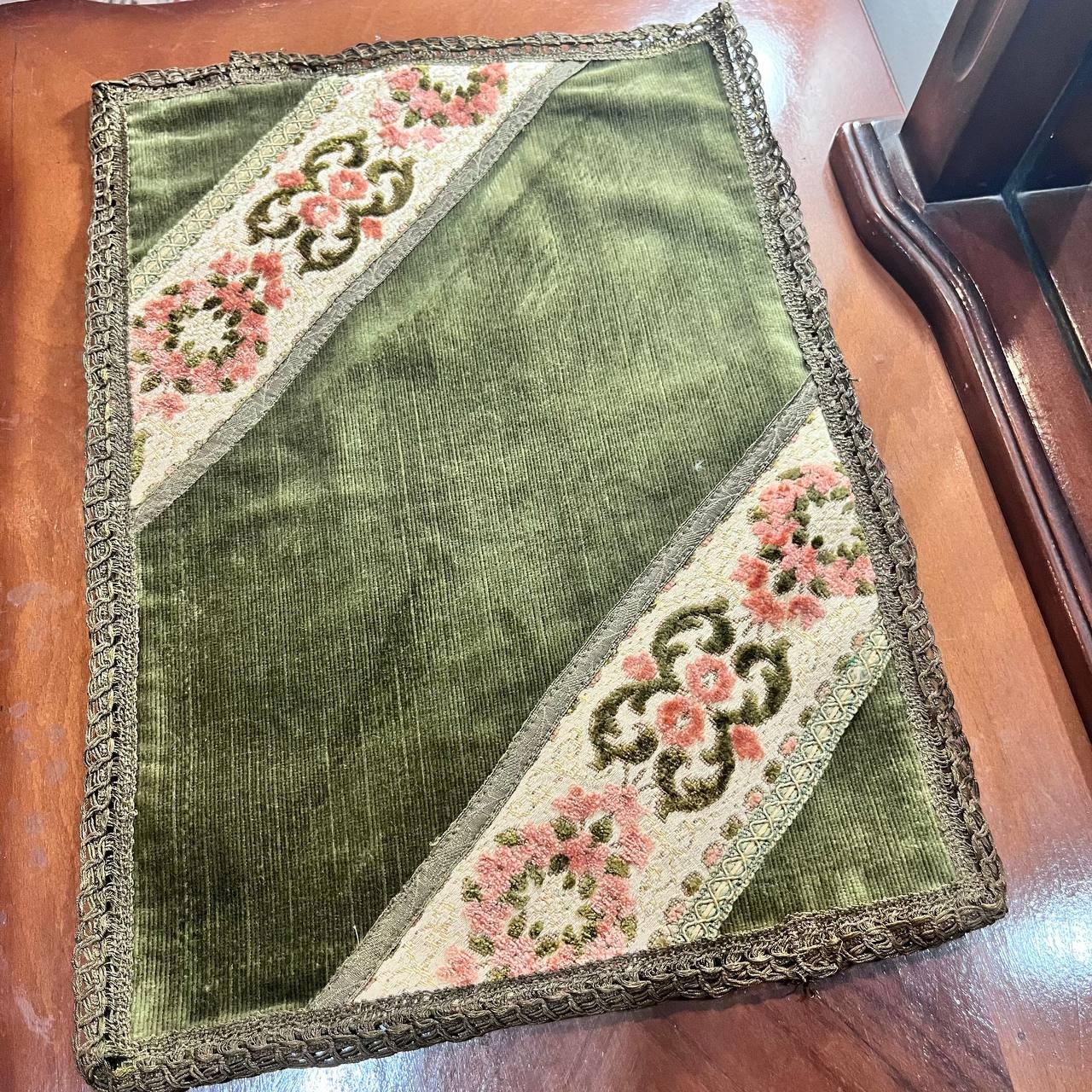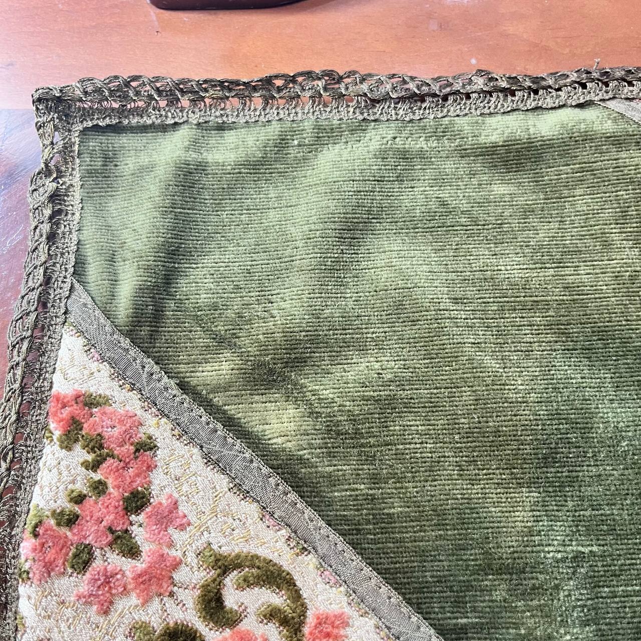 رومیزی مخمل قدیمی ترکیب مخمل ساده و گل برجسته بلژیکی با یراق سیمی