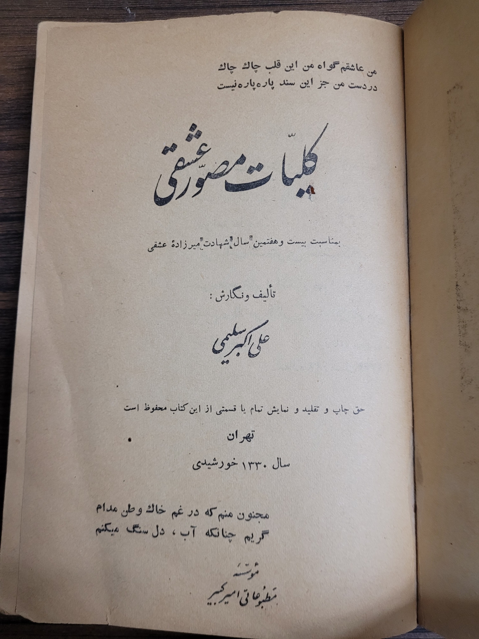 کلیات مصور عشقی چاپ انتشارات امیرکبیر سال 1330