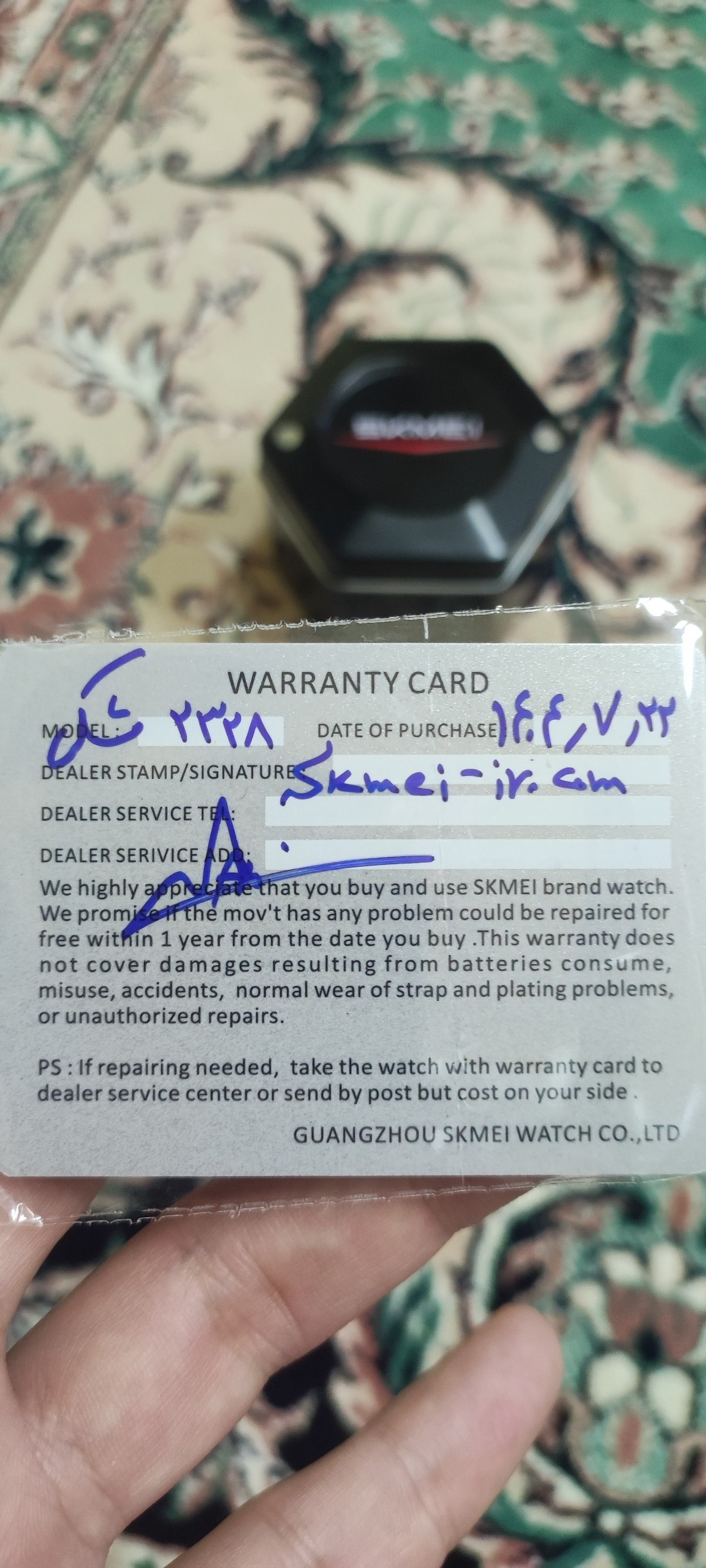 تاریخ خرید 22 مهر هست و یکسال گارانتی داره، کارت گارانتی هم موجوده، از این جهت ساعت نو هستش