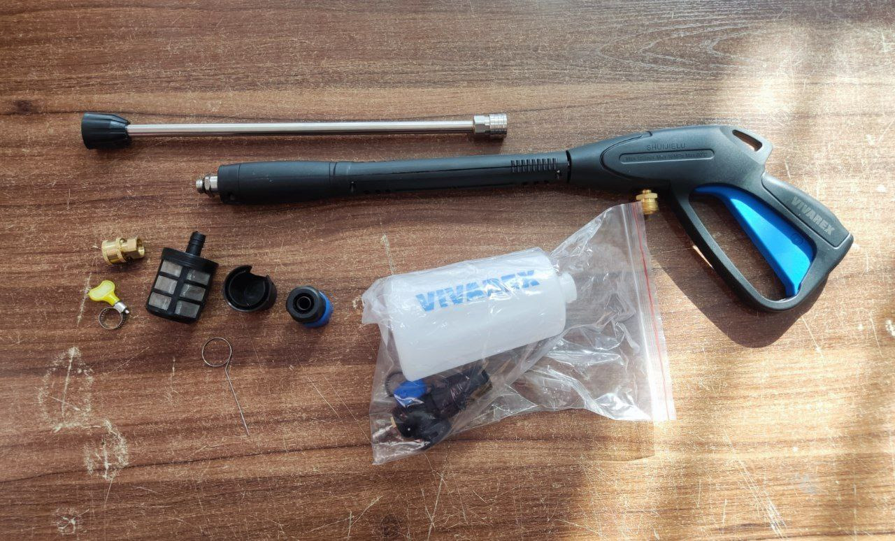 لوازم جانبی گان و لنس , شلنگ فشار قوی , دو عدد اتصالات ورودی ، مخزن کف پاش ، فیلتر آب و