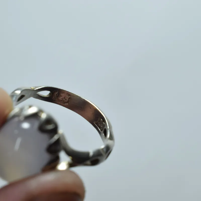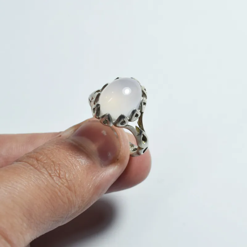 انگشتر نقره 925 با نگین عقیق یاسی معدنی تراش دست