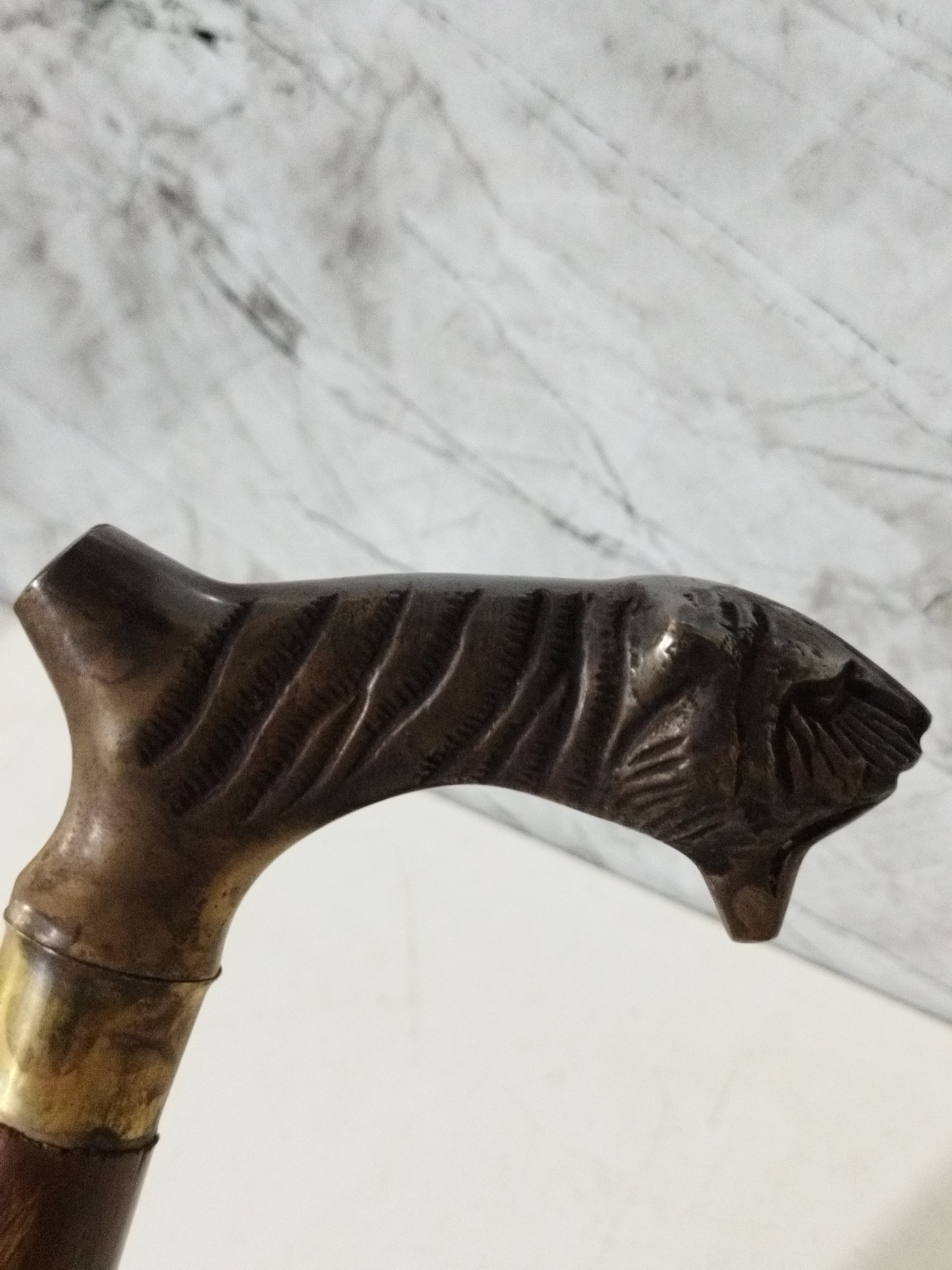 عصای سلطنتی تماما برنز کوب با دسته سر پلنگ