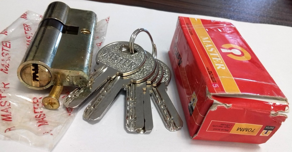 قفل با مارک مستر هست و دارای 5 کلید کامپیوتری هست با 5 ردیف ساچمه در هر طرف هست قد قفل هم 7 سانته و به اکثر درهای اطاق و ورودی چوبی میخوره