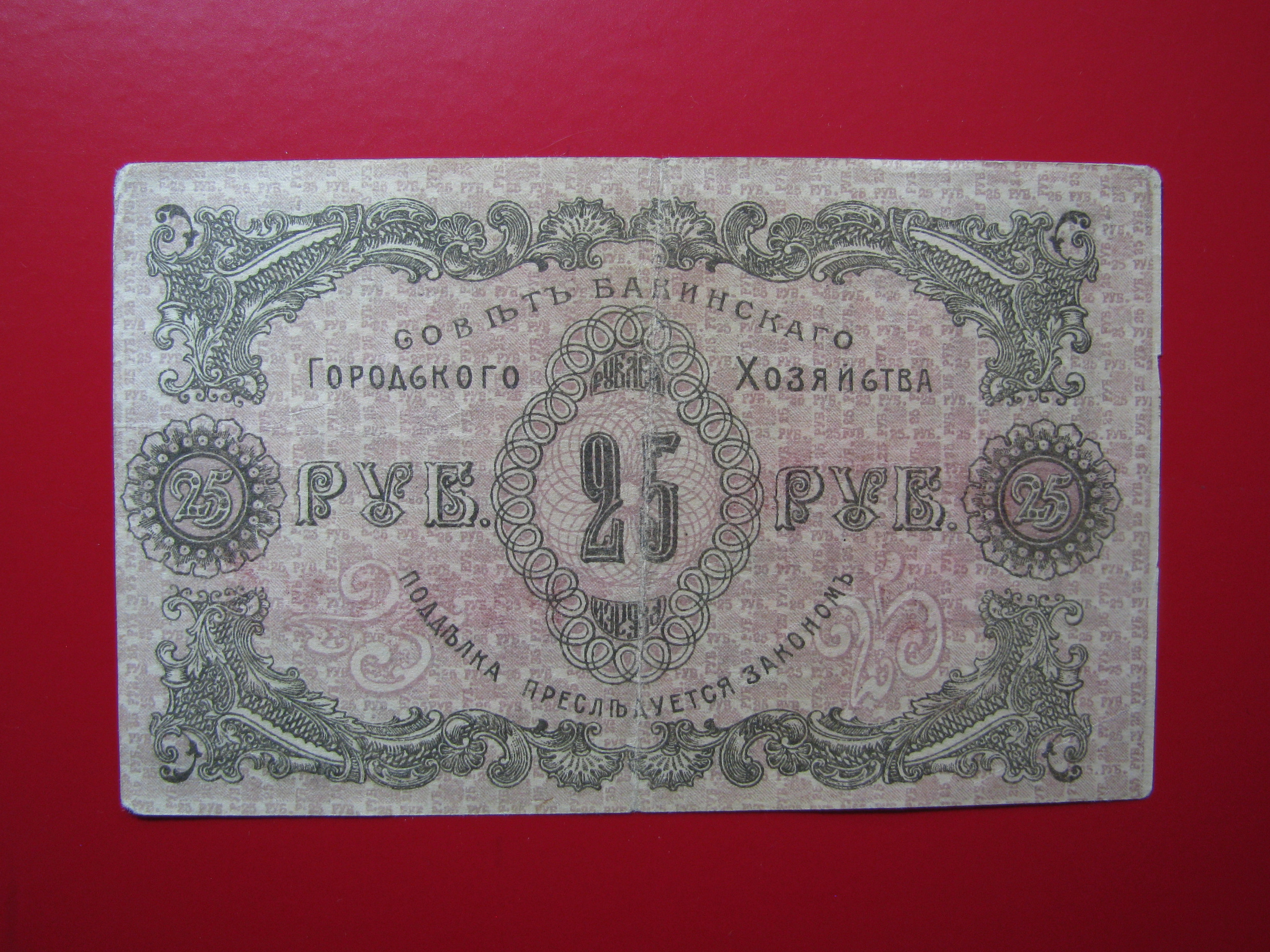 اسکناس کوچک 25 روبل 1918 باکو - کمیاب
