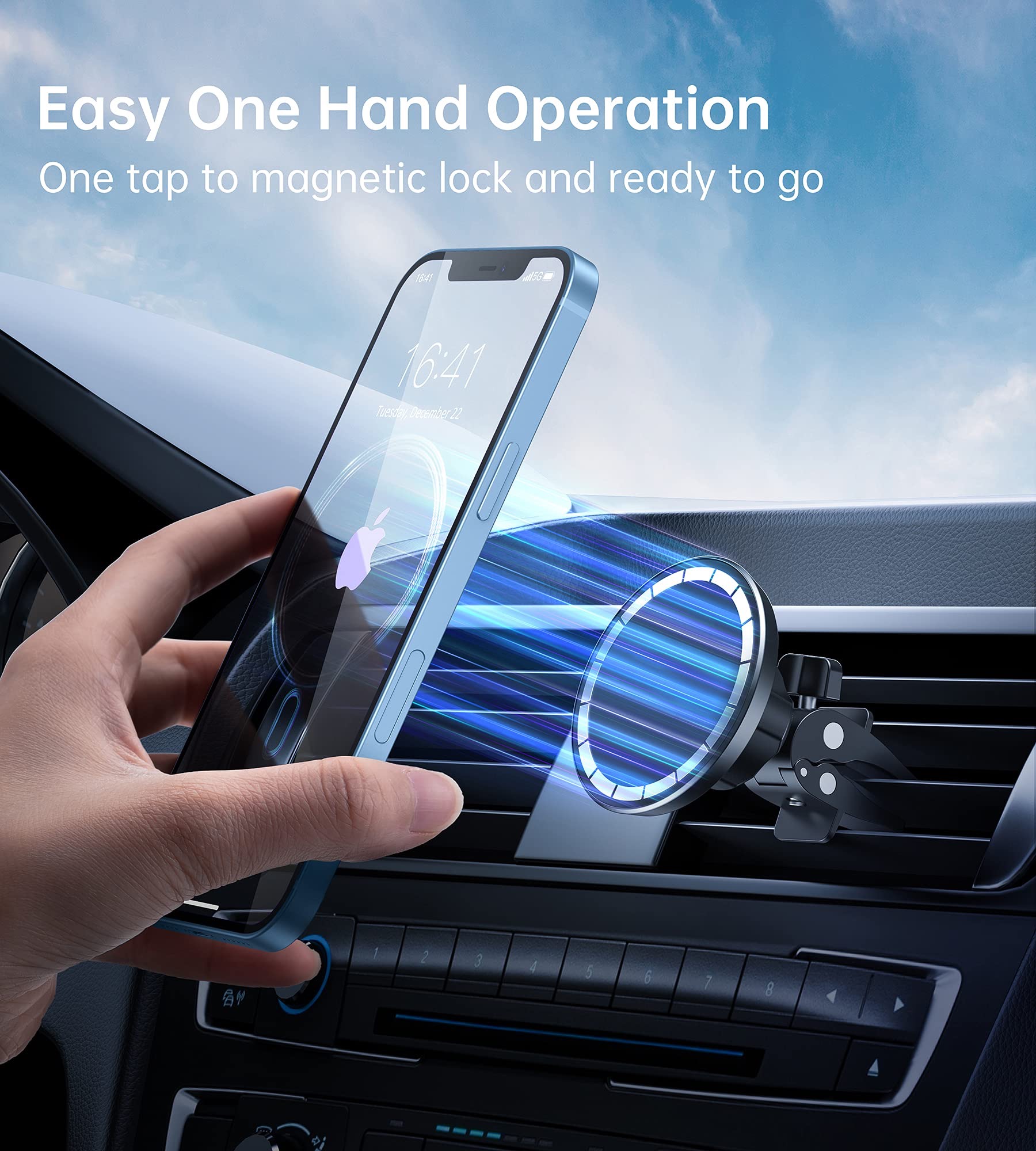 یک نگهدارنده مغناطیسی کوچک خودرو روی دریچه تهویه، اندازه کوچک آن دید را کاهش میدهد و دریچه هوا را نمیپوشاند.