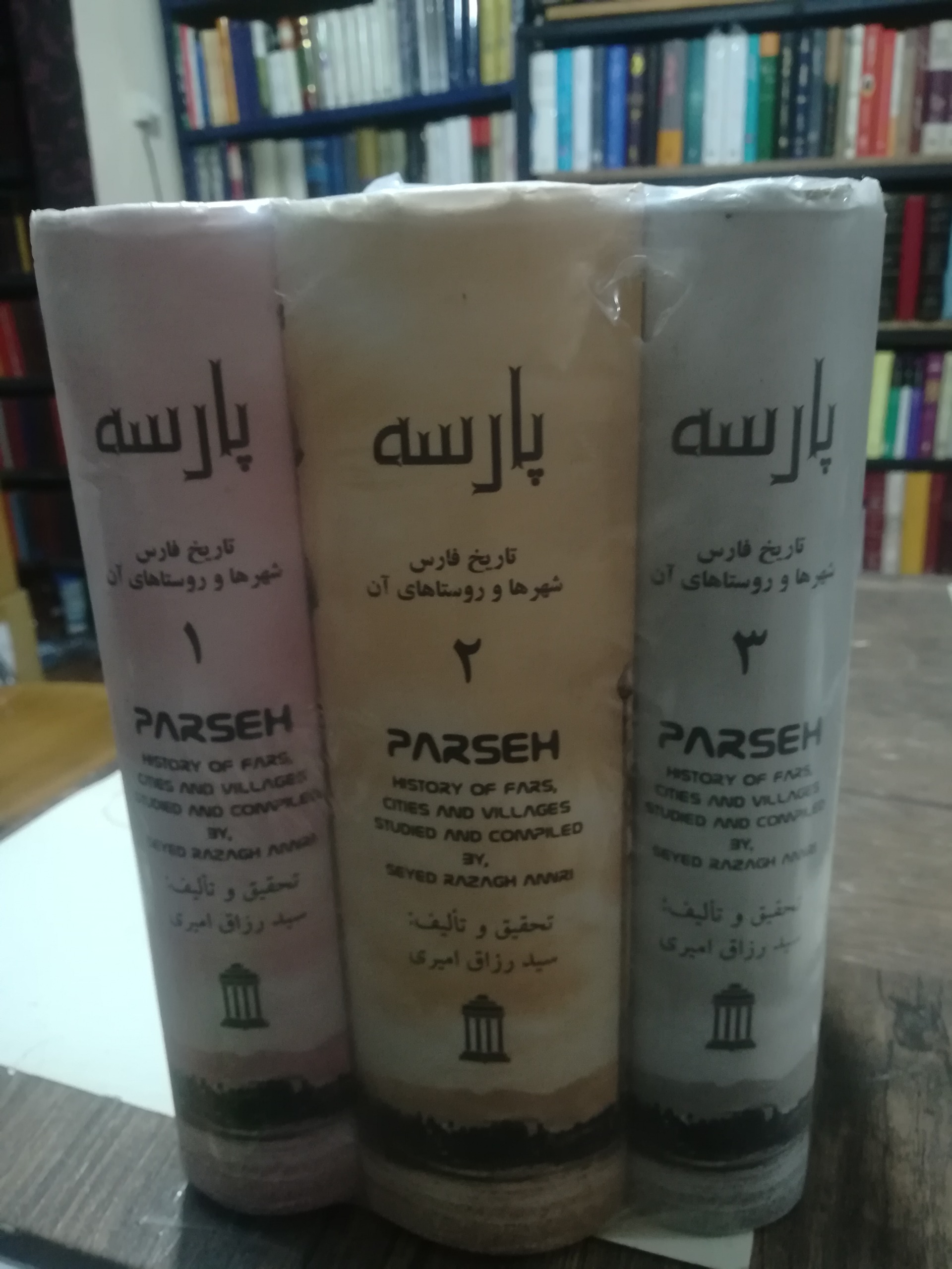کتاب بسیار خواندنی و معروف در باره جغرافیای فارسی و اطراف آن تحقیق و تالیف سید رزاق امیری انتشارات نوید شیراز نو دست نخورده بسیار قطور کاغذ سفید اعلا گالینگور وزیری