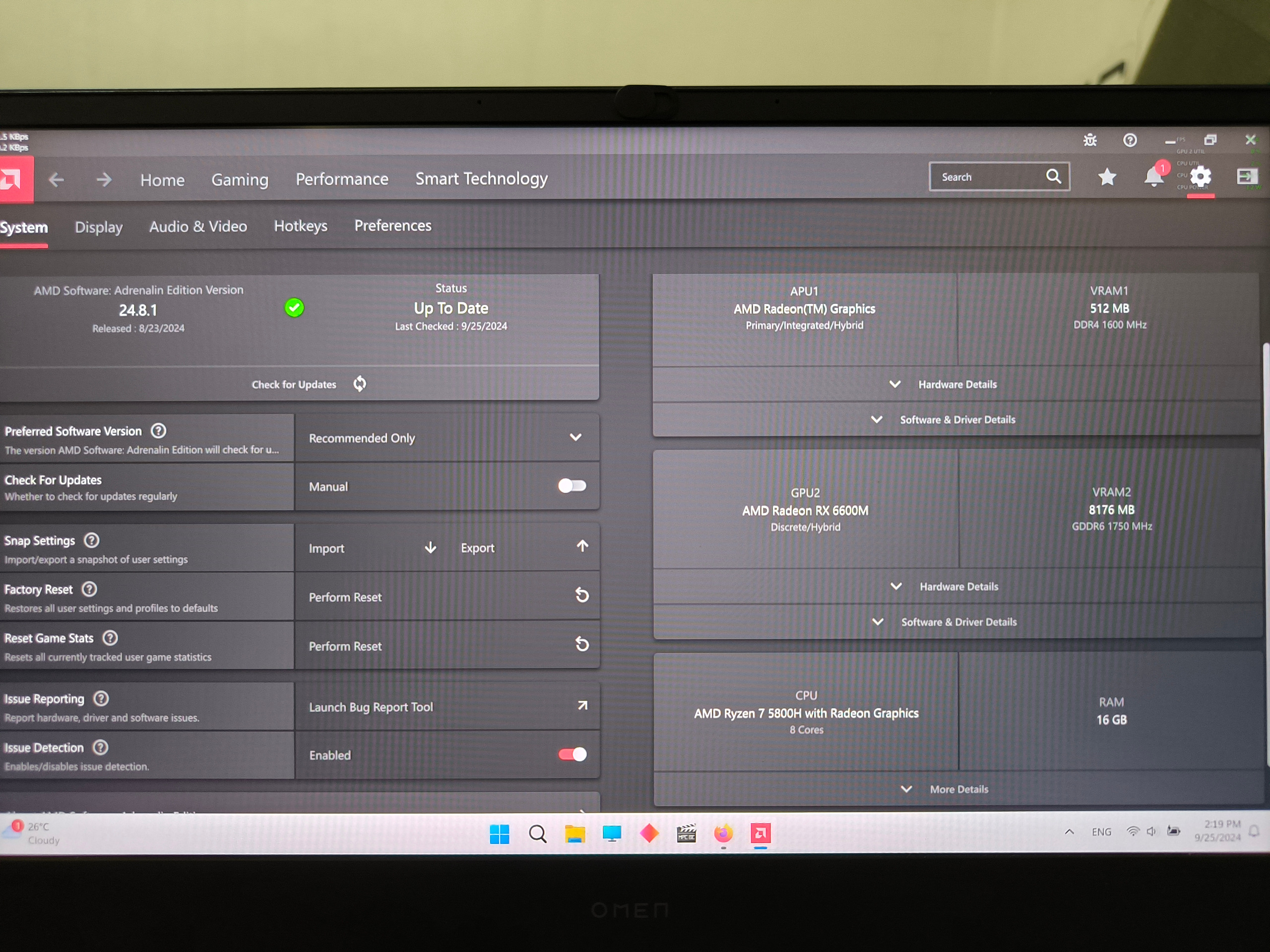 - سازنده و مدل کارت گرافیک: RADEON RX6600M