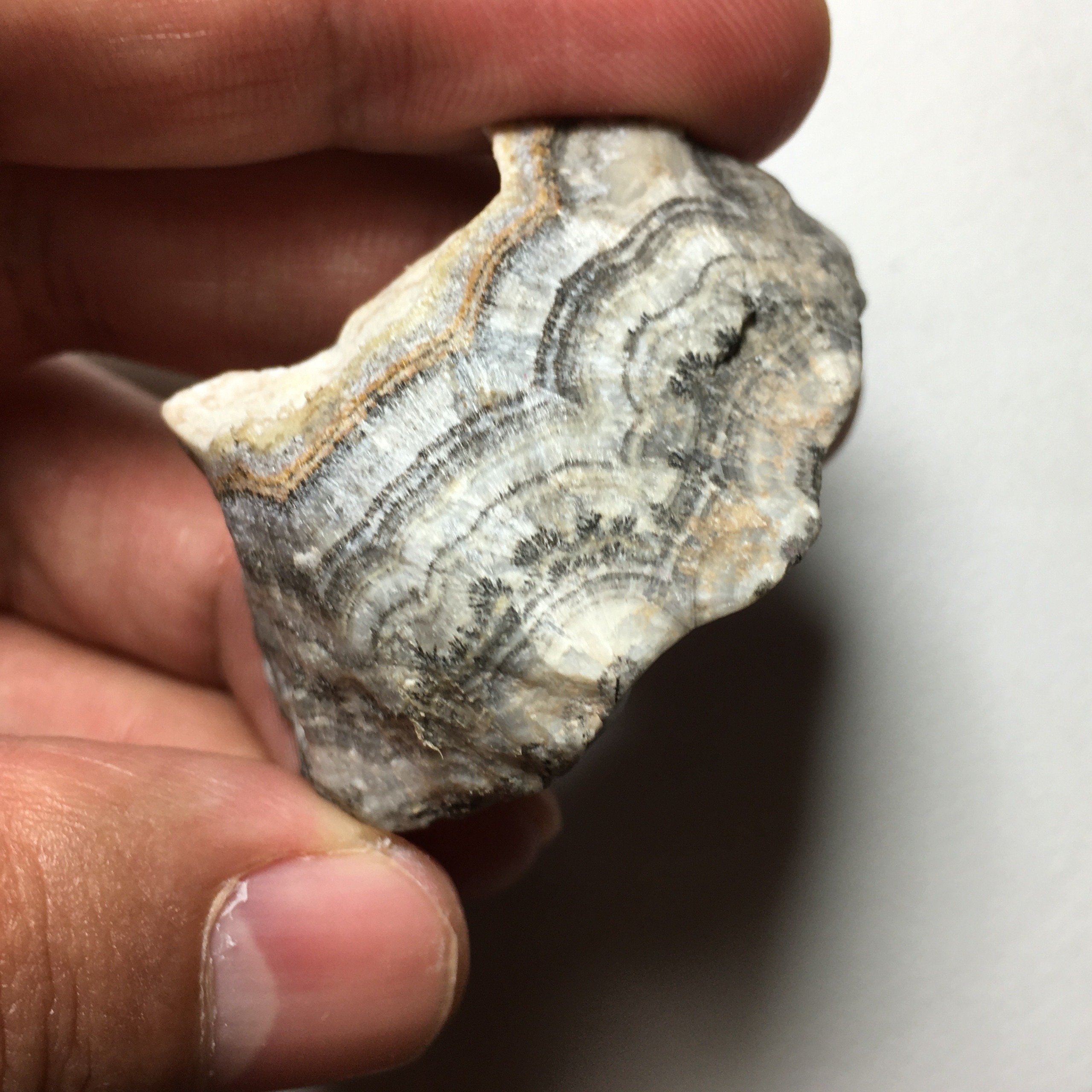 عقیق نواری دندریتی با بخش هم مرکز و رگه کلسیتی