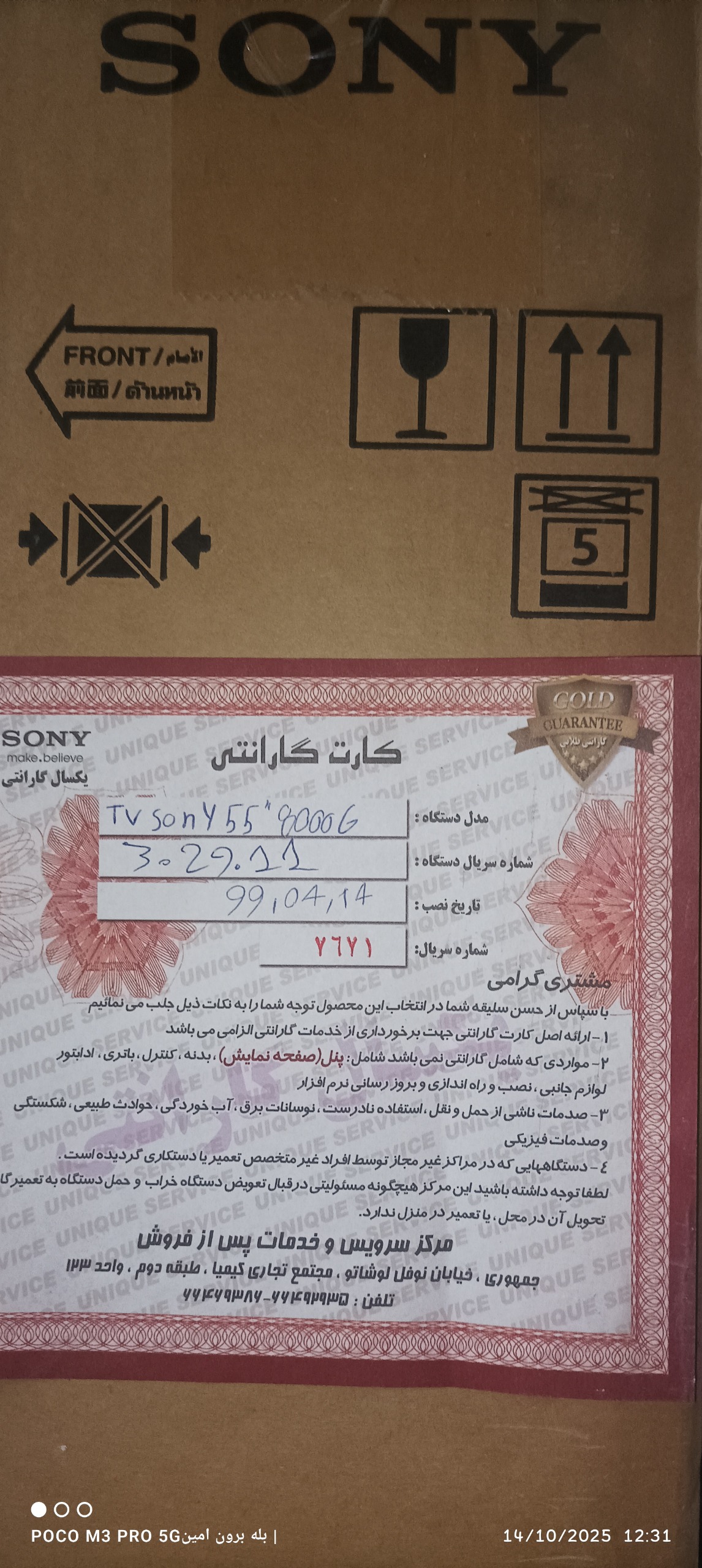 ؛ یک عدد کارتن تلویزیون  "55 SONY بصورت صحیح و سالم همراه با یونولیت های محافظ داخلی بفروش می رسد لطفاً از تماس یا نوشتن پیام های بیمورد خودداری نمایید.