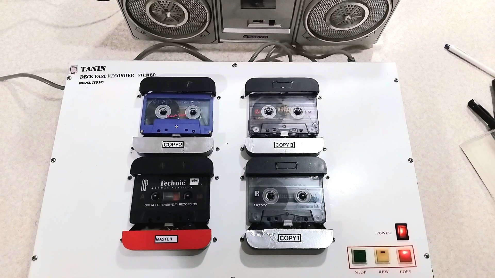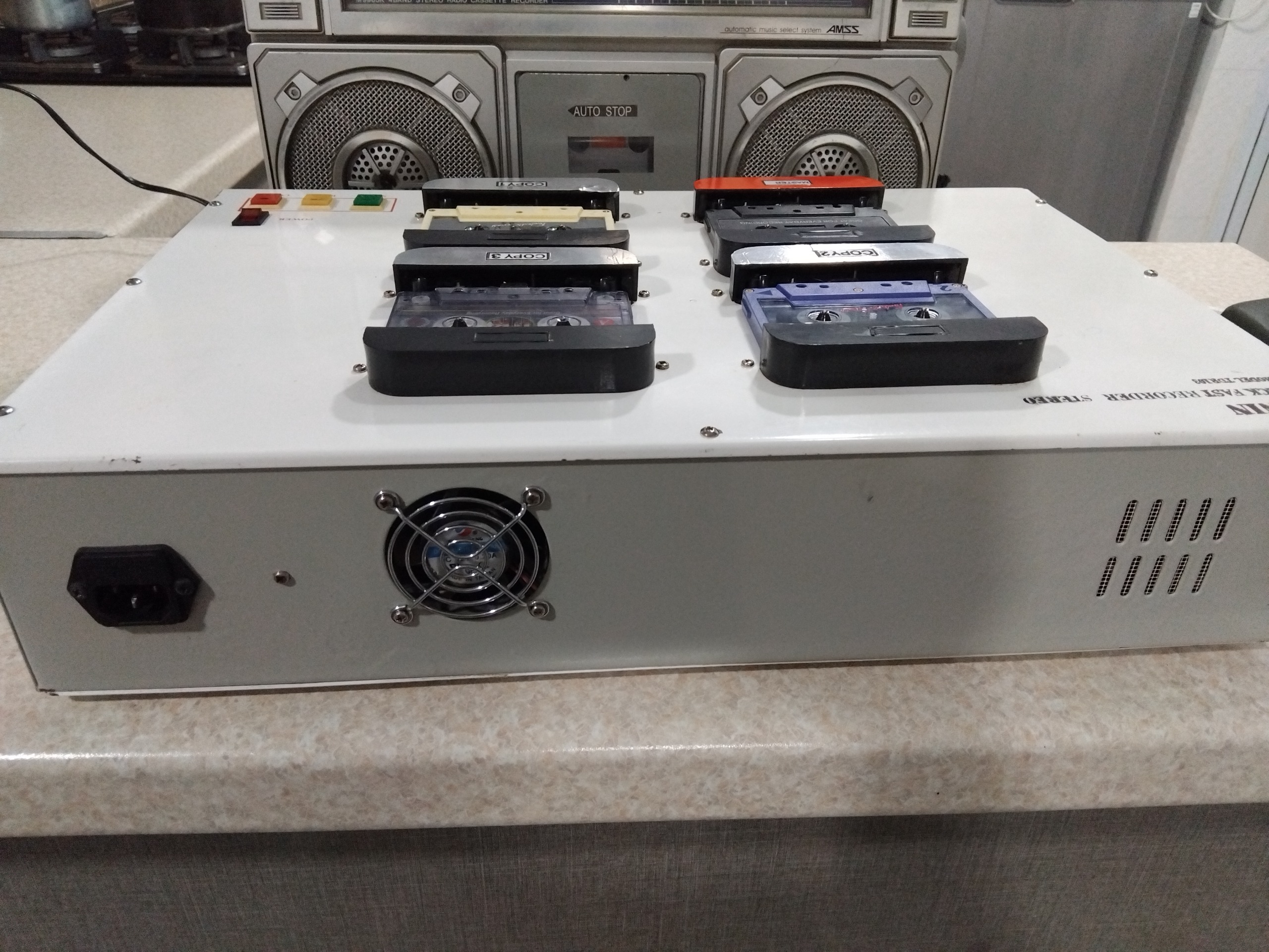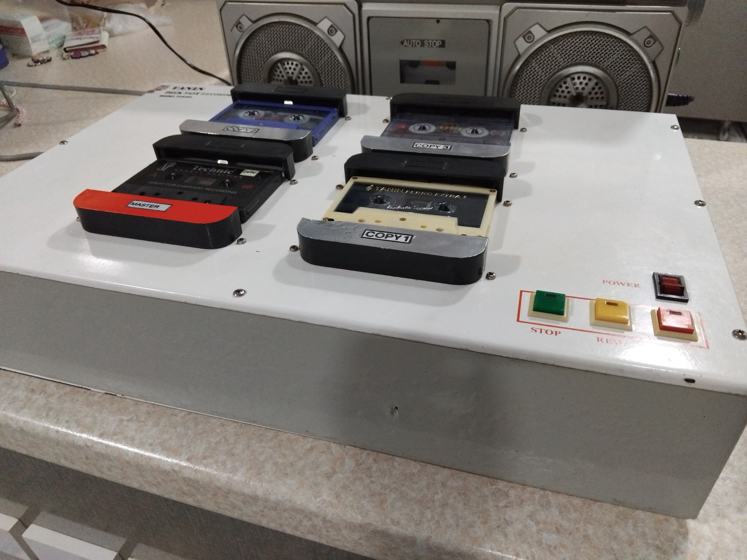 دستگاه تکثیرسریع نوارکاست همه کاست هاسالم کاست کپی شماره2 بدون ایراد کاست کپی3و4 ازحدنرمال یه زره صدای خواننده رونازک ترمیکنه احتمالاتسمه شل باشه درخریددقت کنیدکالاسنگین وزنه مرجوعی ندارم دوستان قیمتی که گزاشتم پول قطعاتش هم نیست من به عنوان معیوب میدم که بعدا نگرانی پیش نیاد سه نوارکاست رو درض یکی دودقیقه تکثیرمیکنه