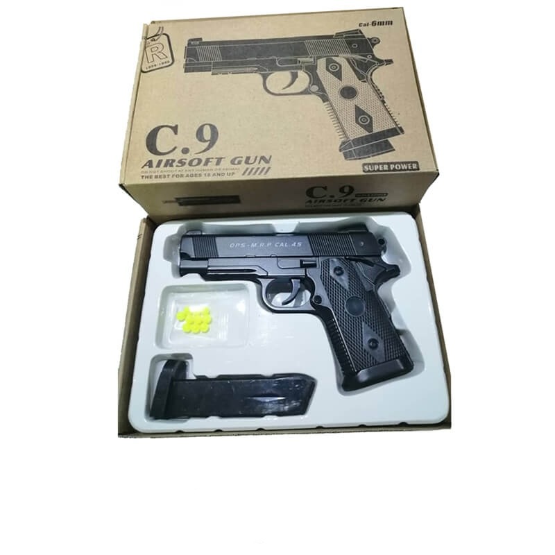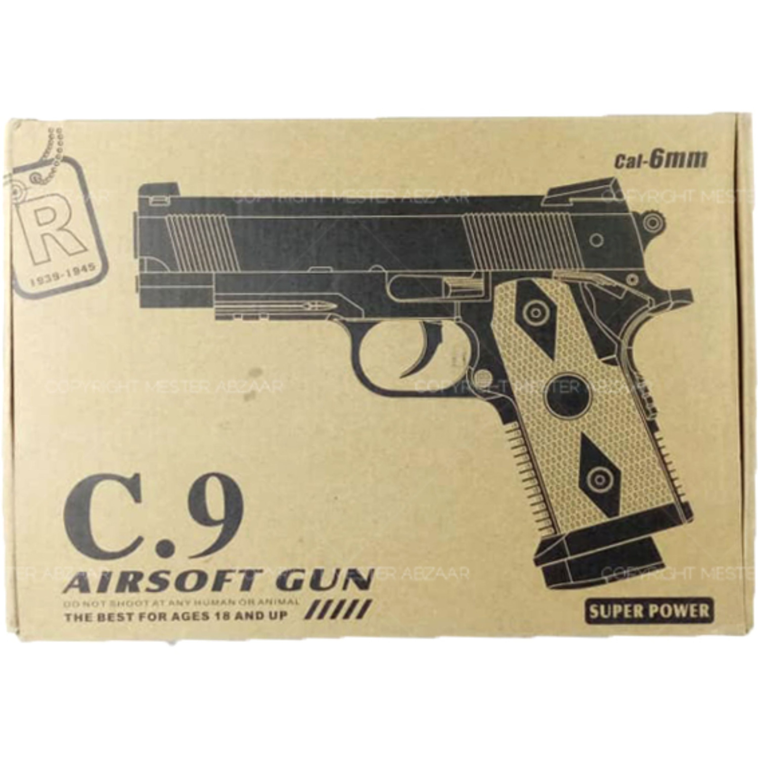 تفنگ کلت فلزی ایرسافت گان مدل C9 با قابلیت شلیک ساچمه های پلاستیکی 6 میلیمتری