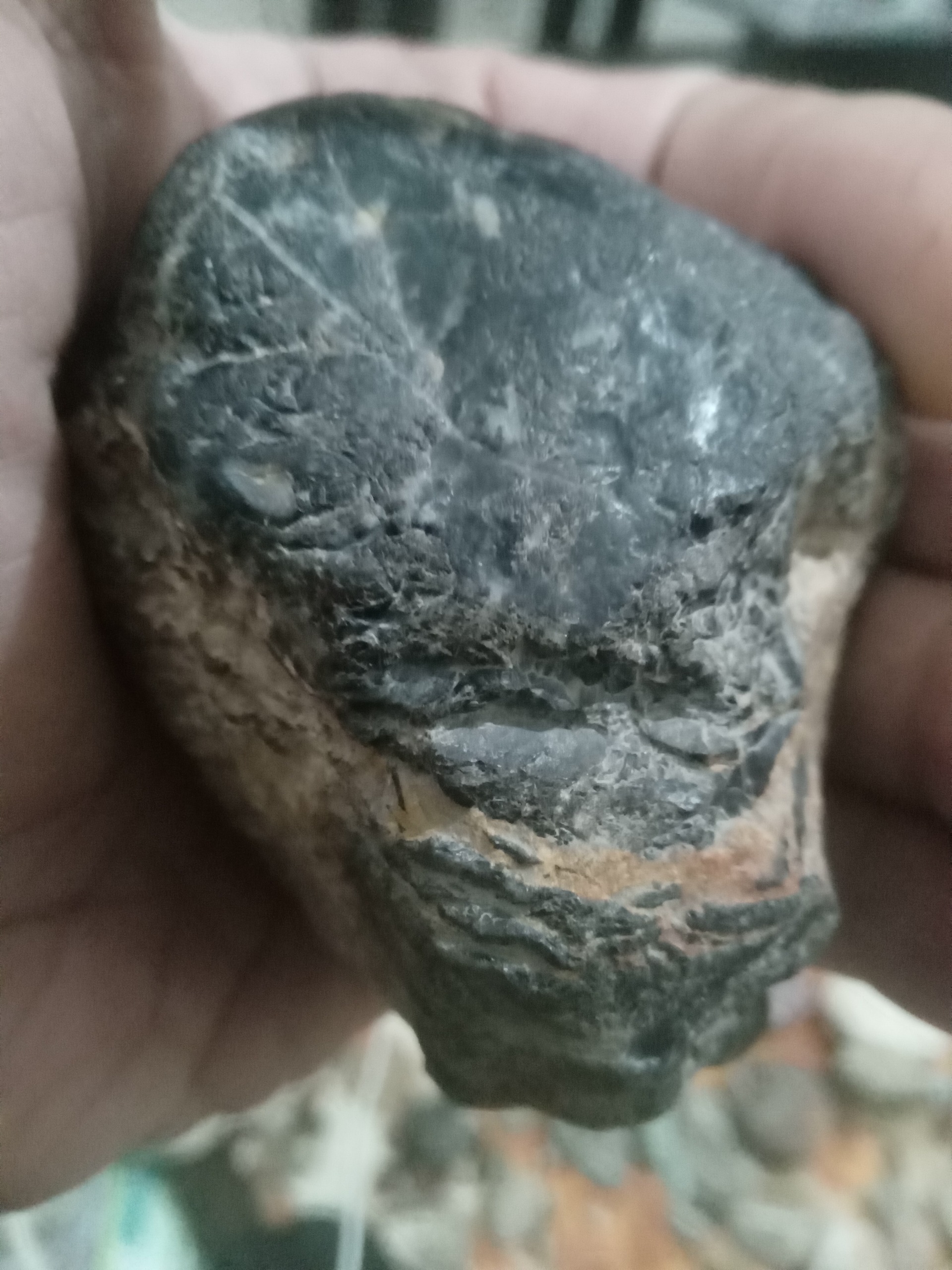 شهاب سنگ سیاه نایاب با رگه های طلایی زیبا فوق کلکسیونی که به شکل کله ی گاوه فروشی