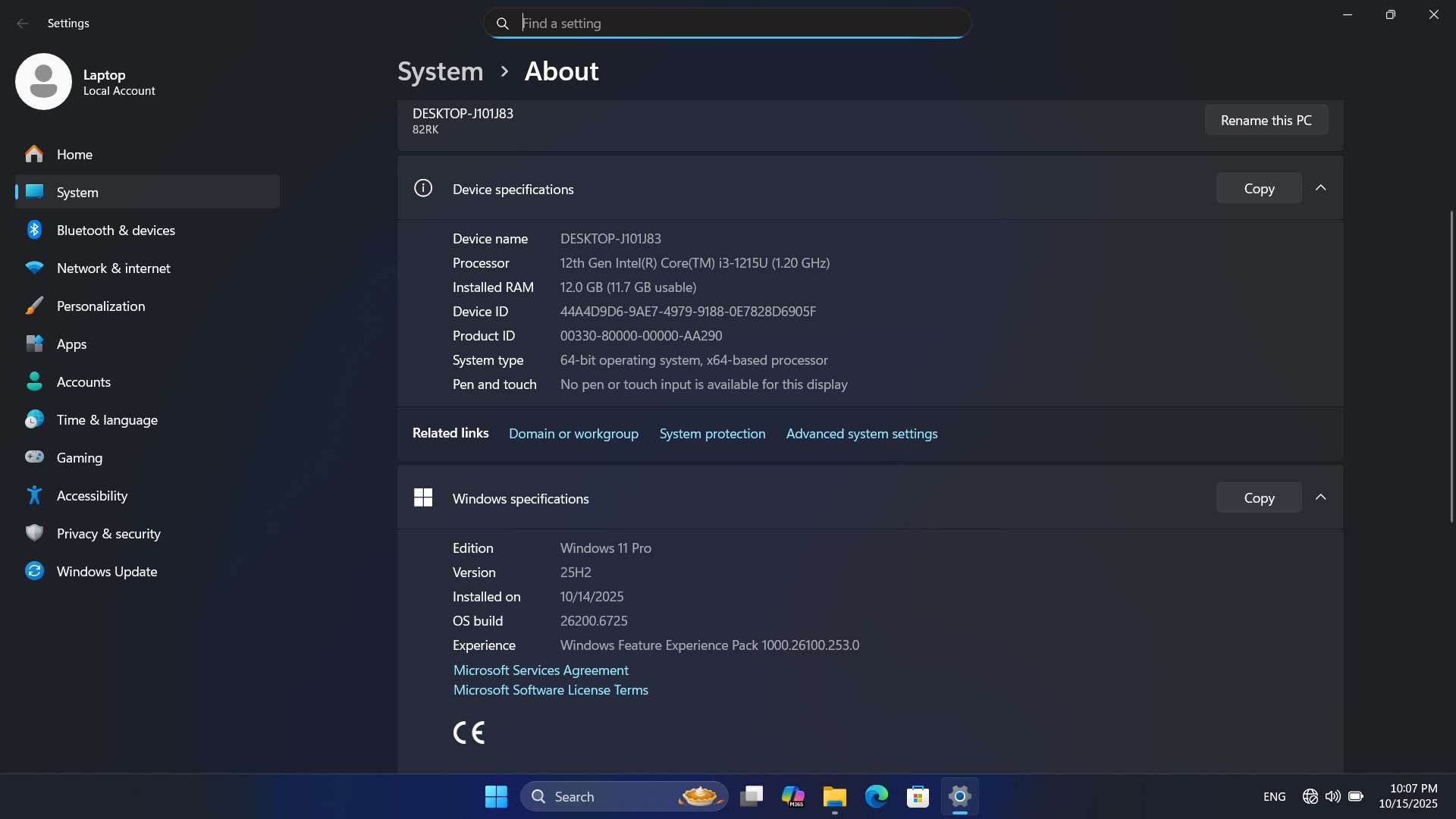 پردازنده (CPU): Intel Core i3-1215U (نسل دوازدهم - 6 هسته (2P + 4E) / 8 رشته، پایه P-core 1.2GHz / E-core 0.9GHz، حداکثر P-core 4.4GHz / E-core 3.3GHz، کش 10MB)