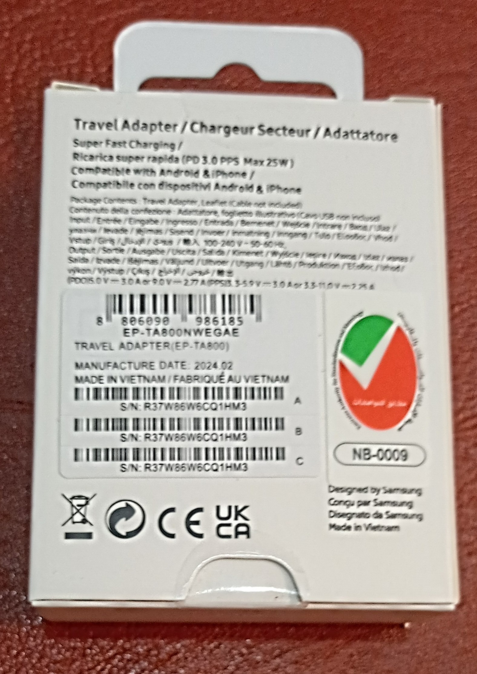 شارژر 25 وات سامسونگ بورد آبی
