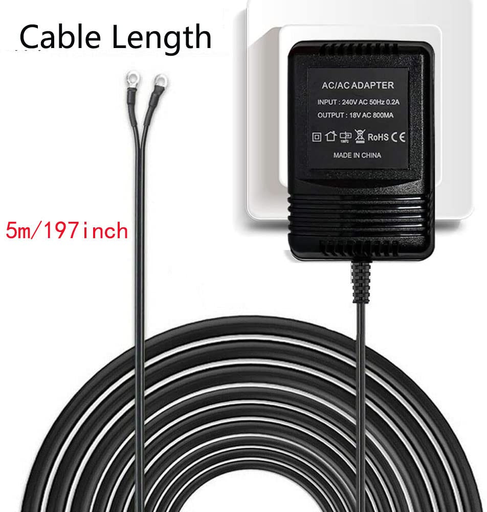 ترانسفورماتور زنگ در 18 ولت/800 میلی آمپر، کابل ترانسفورماتور آداپتور منبع تغذیه AC مشکی لوازم جانبی خانه هوشمند سازگار با زنگ ویدیویی حلقه 2 پرو (5M)