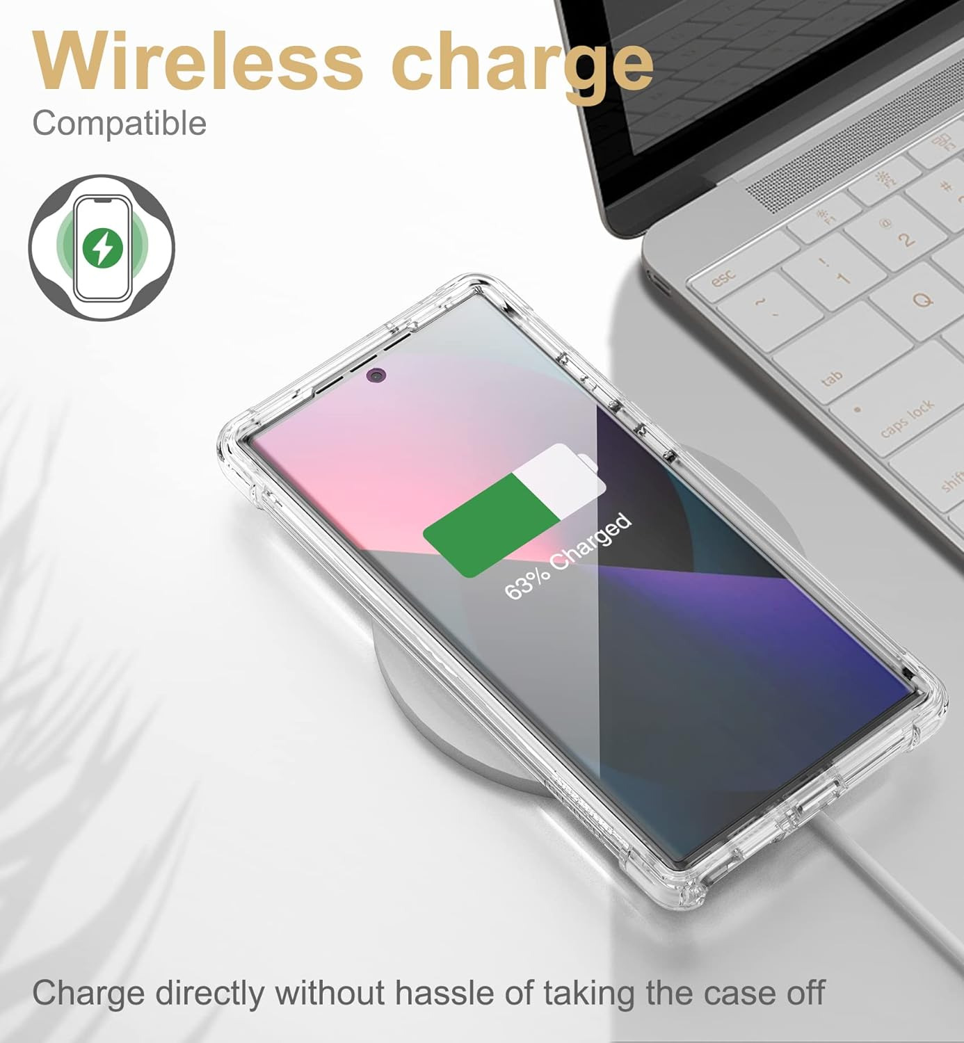 - شارژ بیسیم و برشهای دقیق این قاب گوشی S23 Ultra Clear از شارژ بیسیم پشتیبانی میکند، حتی اگر قاب گوشی جدا نشود، بر شارژ کردن تاثیری نخواهد داشت. بریدگیهای دقیق با تمام دکمهها و موقعیتهای سوراخ گوشی مطابقت دارند.
