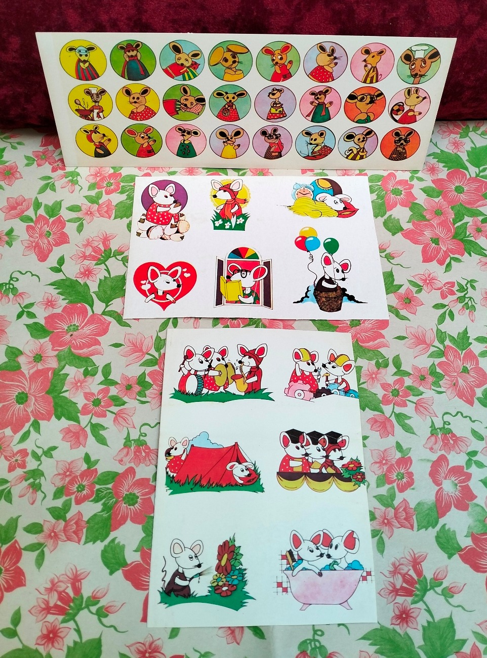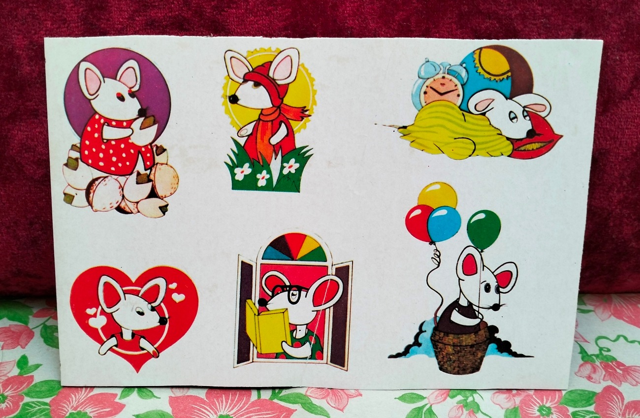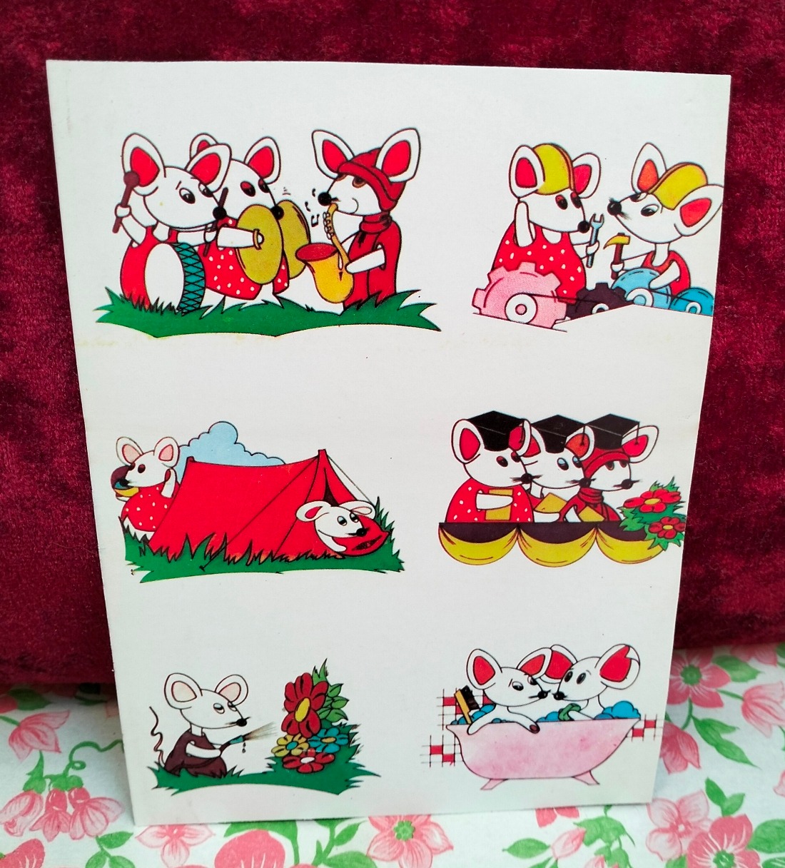 3 مدل برچسب قدیمی مدرسه موشها ، اصل و کلکسیونی ، در حد نو و آکبند قدیمی ، چاپ دهه 60 ، ته انباری ، مطابق عکسها