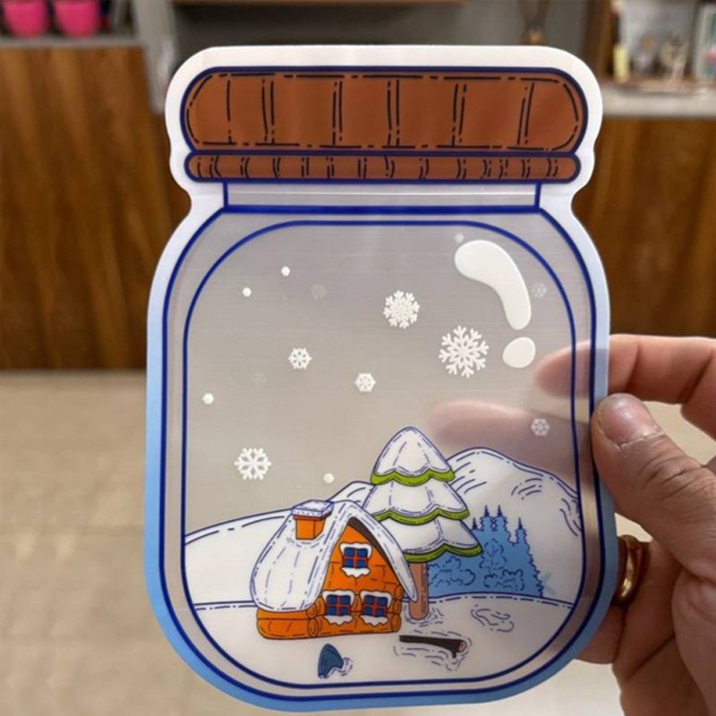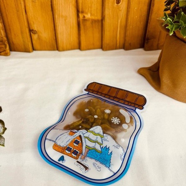 طراحی ظاهری زیبا ، فانتزی و چشم نواز که می توان شمایل آن را همه پسند معرفی کرد . شکل محصول همانند یک بانکه شیشه ای طراحی شده که بر روی خود طرحی از یک منظره برفی دارد ، خصوصیتی که توانسته جذابیت ظاهری آن را افزون گرداند . محتویات درون زیپ کیپ از بیرون تا حدی مشخص می باشد ، بنابراین می توانید از محتویات و مقدار آن درون محفظه مطلع شوید . کالا در بسته بندی 5 عددی ارائه شده که با توجه به ابعاد و شکل ظاهری ، قابلیت استفاده برای جای دادن مواد غذایی نظیر ادویه درون منزل و خوراکی هایی همانند آجیل ، بیسکوییت و ... برای کودکان داخل مدرسه را فراهم آورده . داخل منزل ، مدرسه ، کمپ ، سفر و یا هر جایی که نیاز باشد می توانید زیپ کیپ طرح فانتزی را به همراه خود داشته باشید ، تا خوراکی های خود را در فضایی امن به دور از آلودگی با دسترسی آسان و البته اشغال کمترین فضای ممکن در اختیار داشته باشید .
