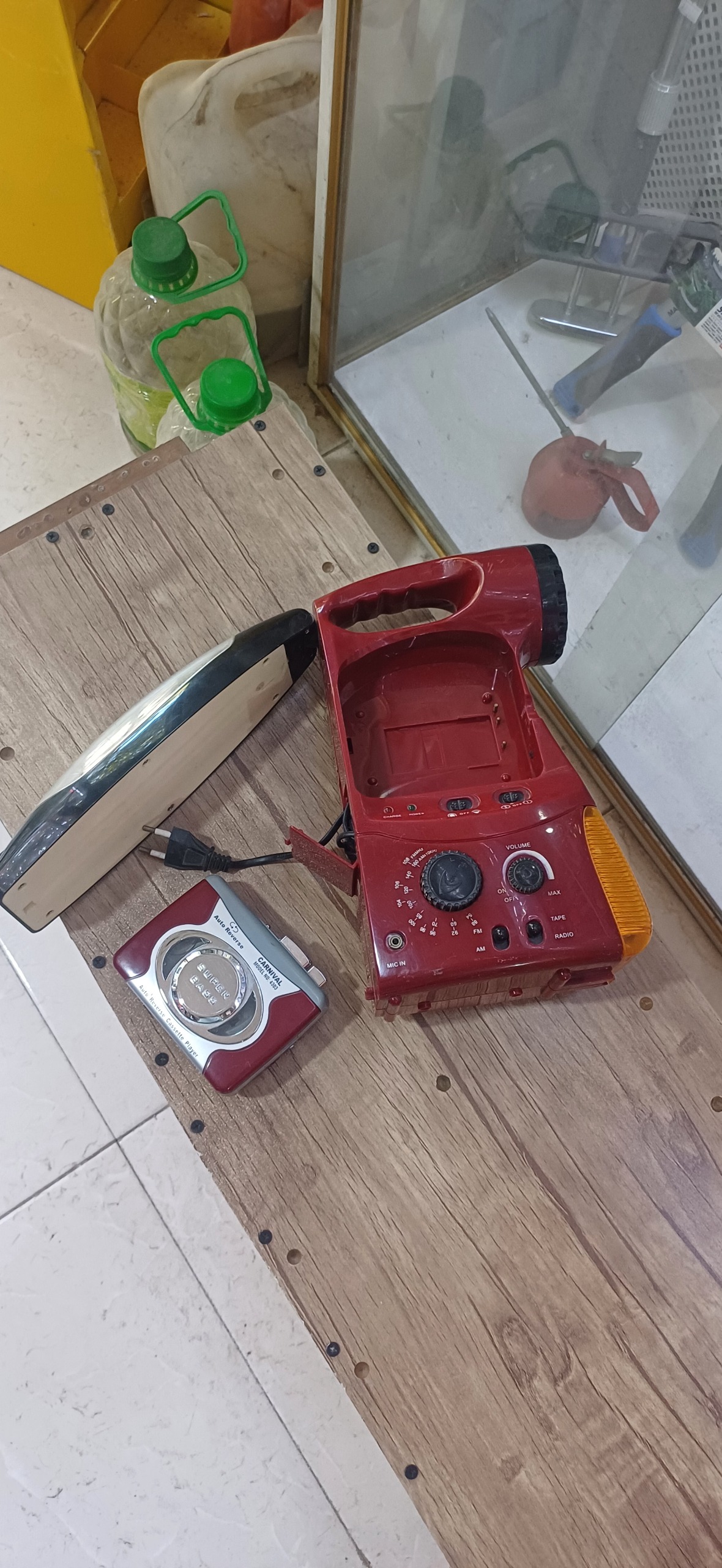 دارای یک عدد واکمن دو لبه آتوریورز که هم با باتری قلمی و هم با باتری دستگاه هم با آداپتور 12 قابل استفاده میباشد.