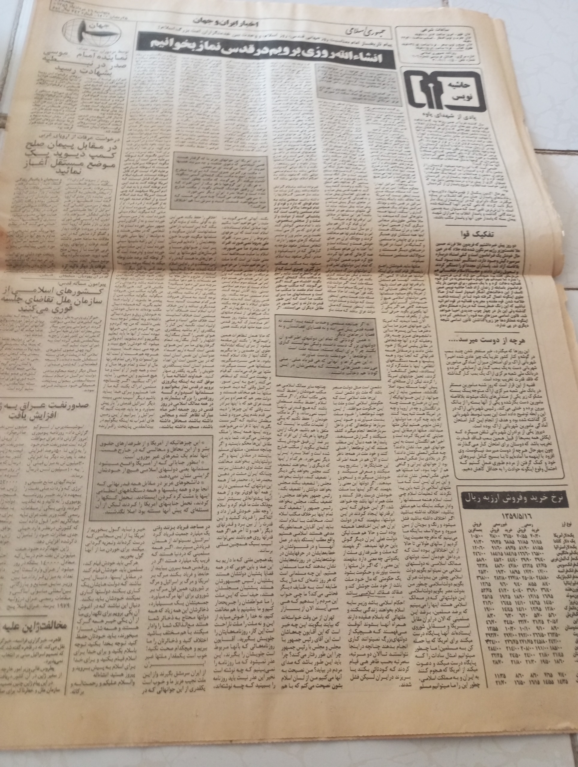 روزنامه جمهوری اسلامی سال 1359