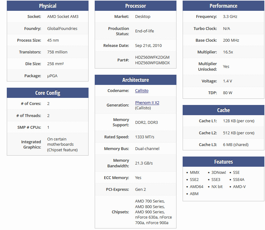 سلام.این cpu با فرکانس پایه 3.3 گیگاهرتز و حافظه کش L3 6 مگابایت به فروش میرسد...این CPU قابلیت اینو داره که با تبدیل به یه CPU چهار هسته ای بشه(با کوری انلاک) چون هسته هاش باز هستن!!! همچنین فن و هیت سینک اورجینال خود AMD هم داره...عکس سوم رو حتما مشاهده کنید..سوالی بود در خدمتم..