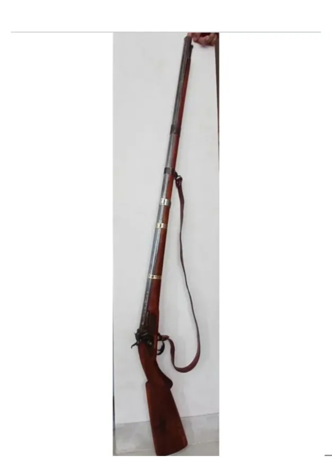 این تفنگ سرپر دقیقا مشابه عکس می باشد و شما تفنگی با این قدمت که تا این حد سالم و تمیز باشه پیدا نمی کنید و با اینکه متعلق به دوره قاجار می باشد ولی کاملا سالم و بدون عیب می باشد.لوله تفنگ شیش ضلعی می باشد که نشان