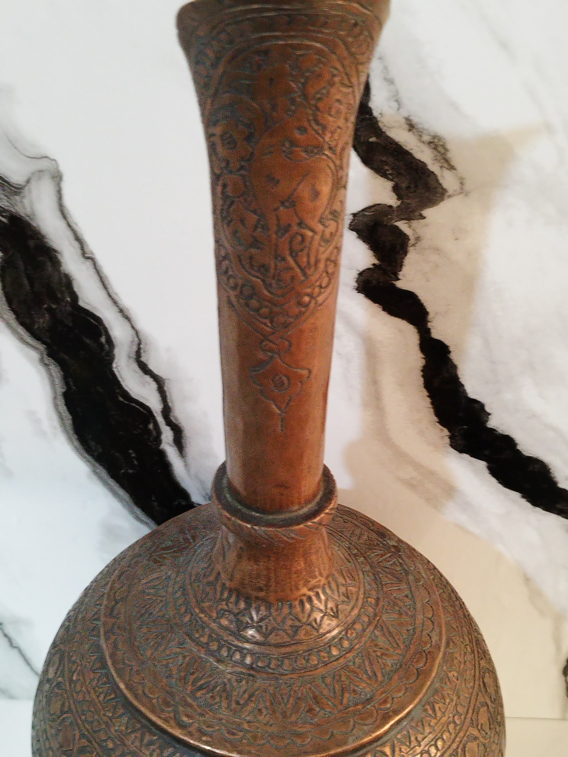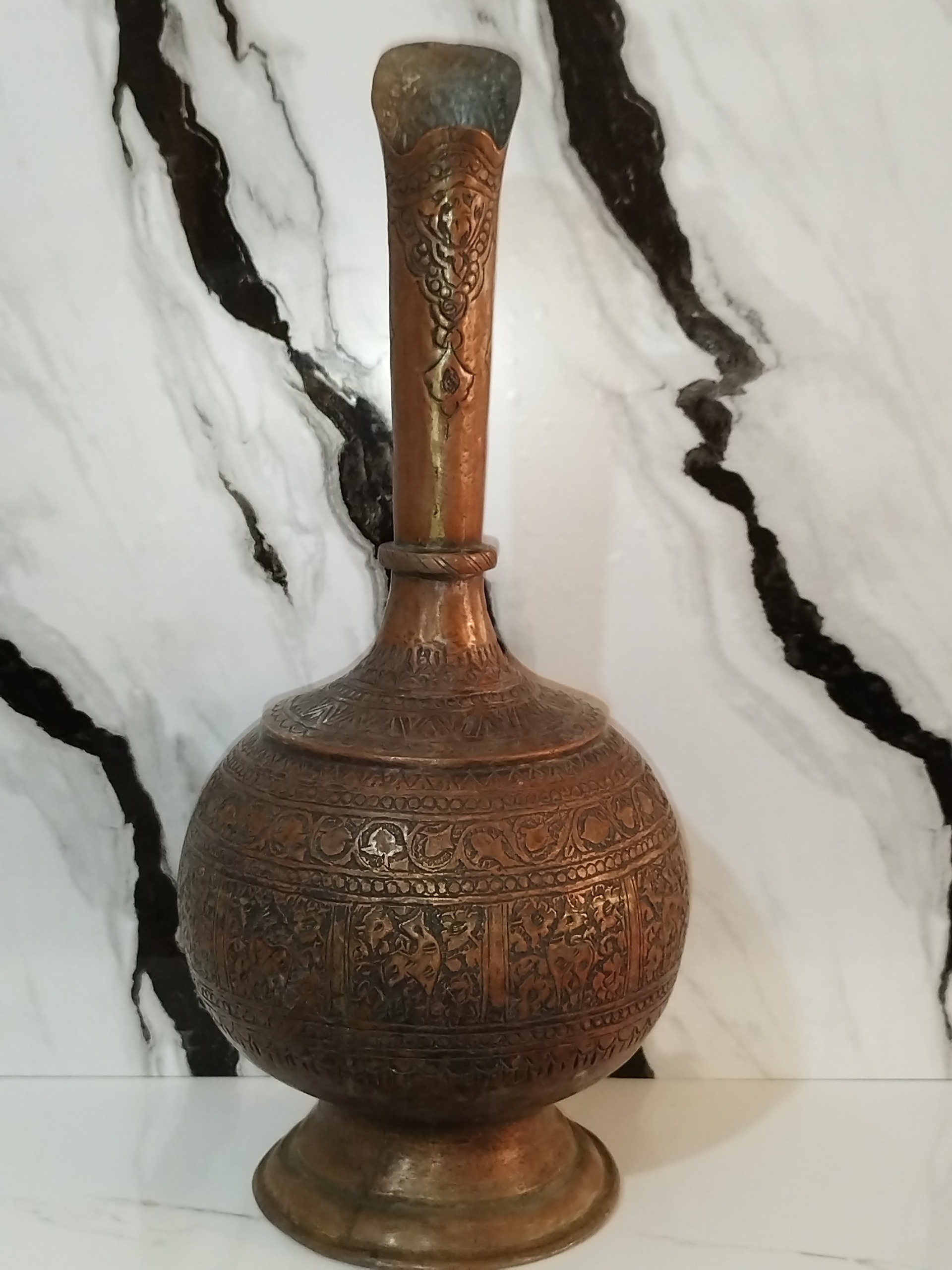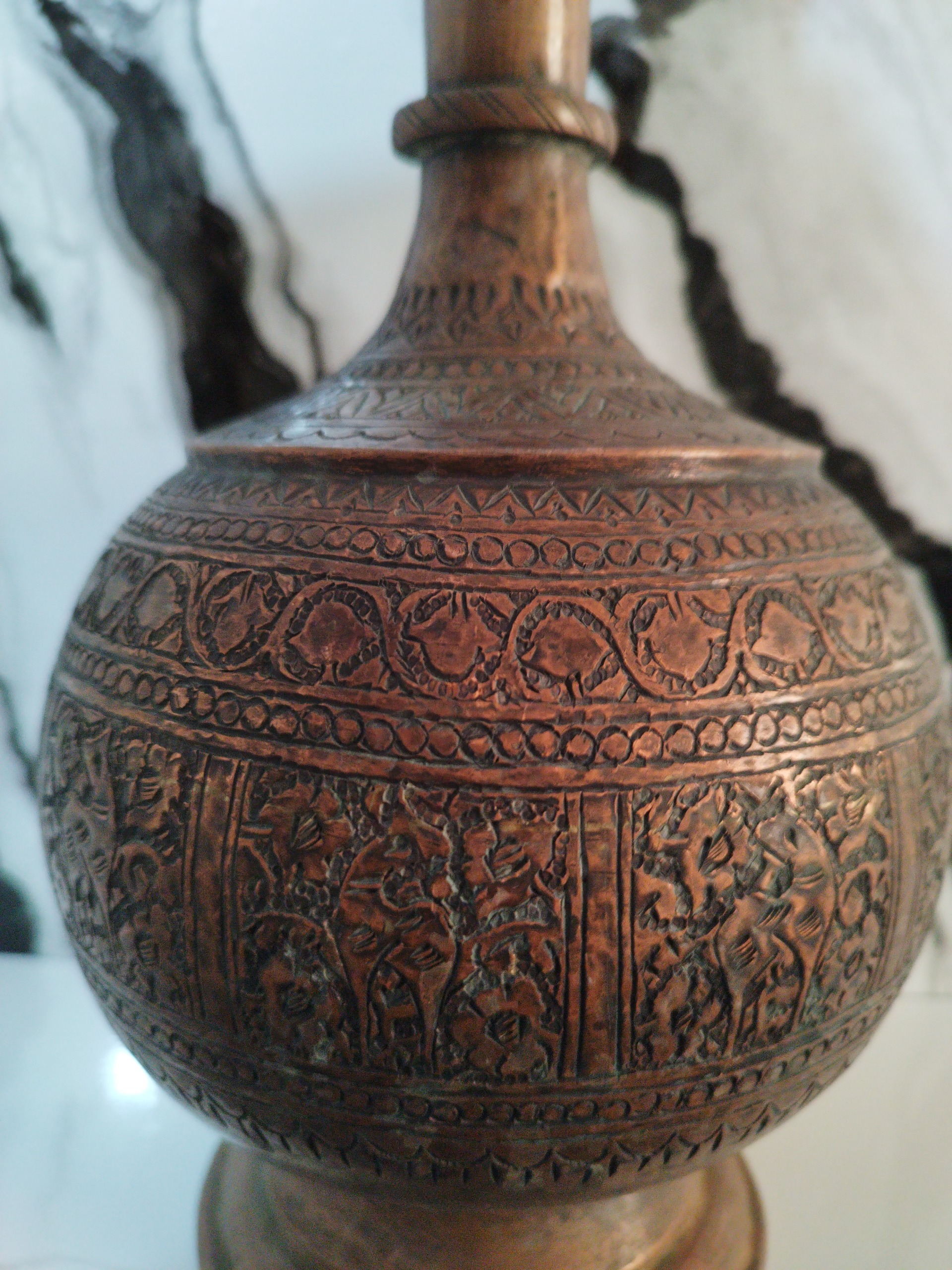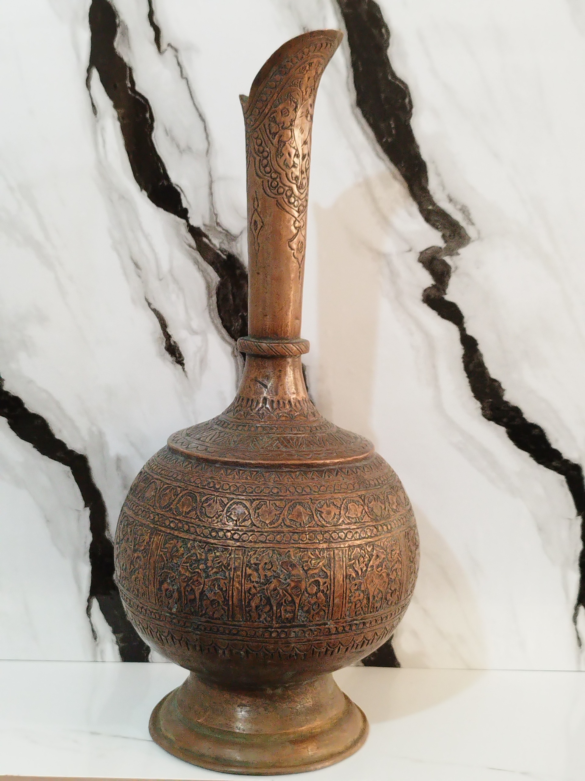 آبریق مسی قدیمی تماما هنر دست و قلمزنی شده