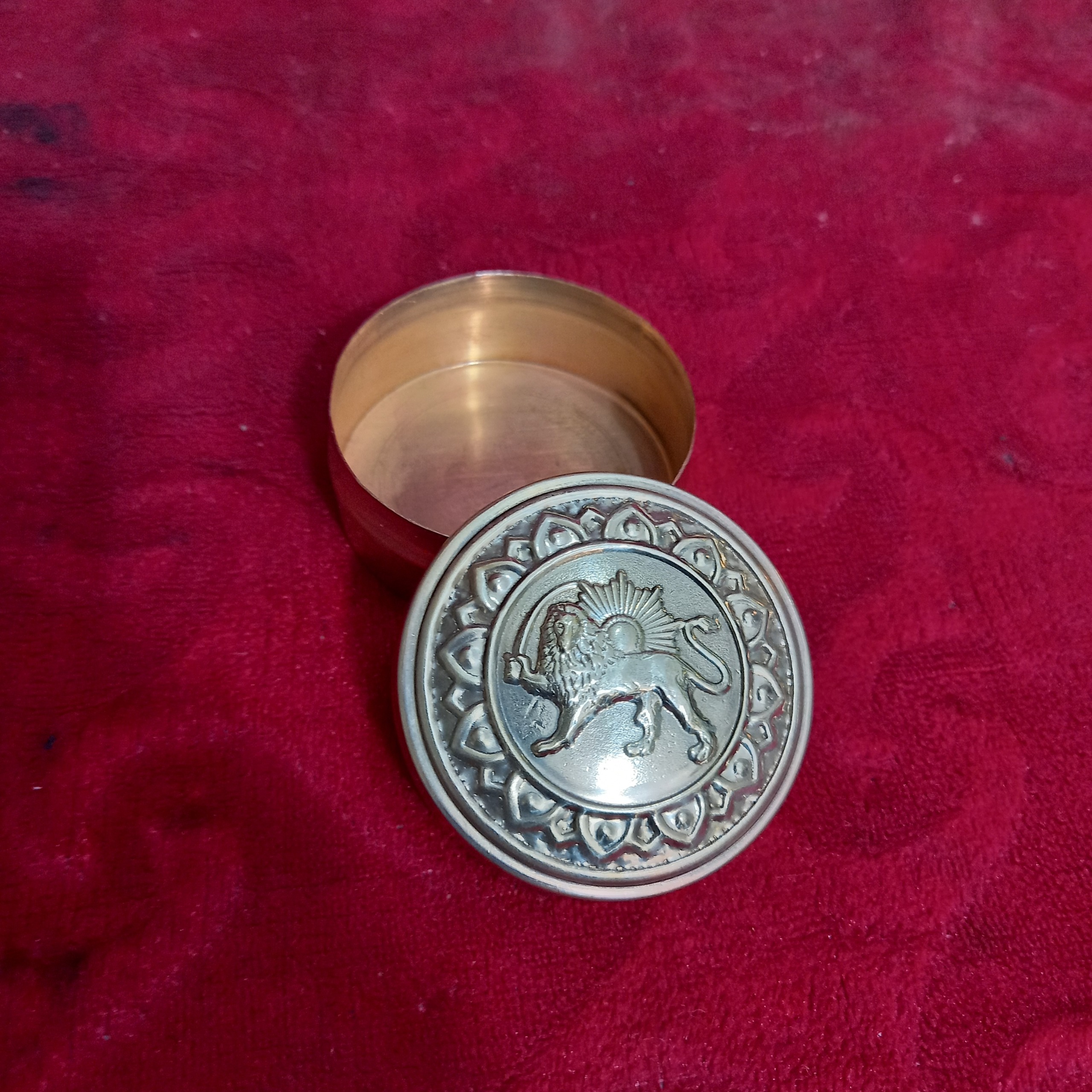 قوطی زیبایه برنجی شیرنشان بکرقدیمی