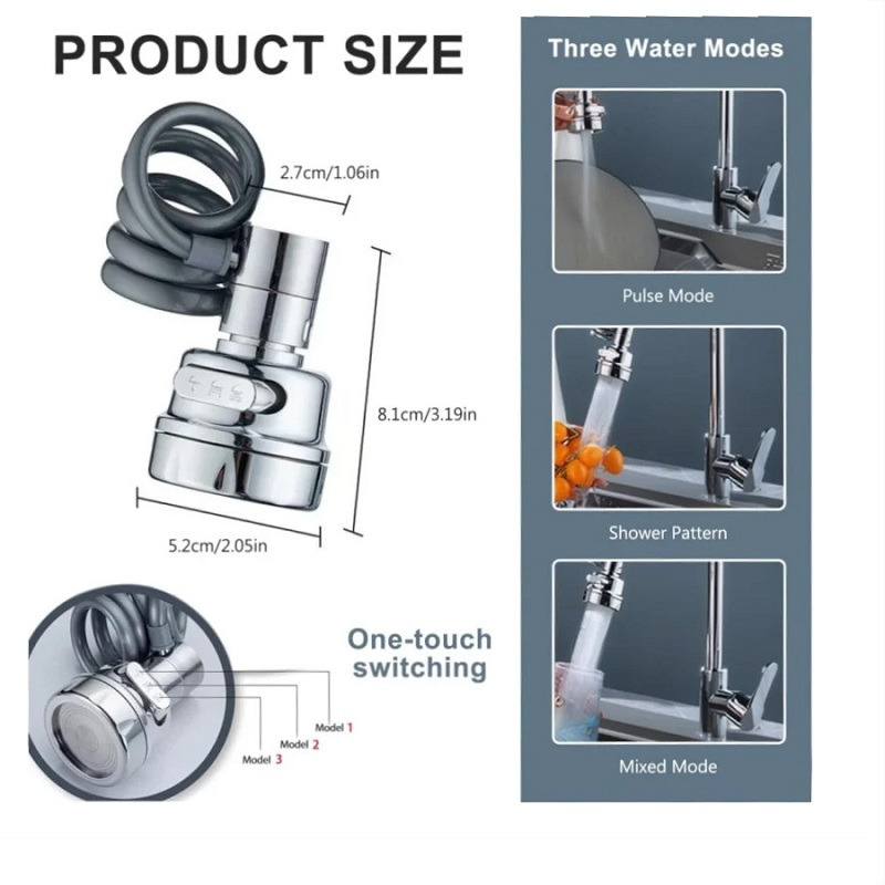 سر شیر شلنگ دار 3 حالته با طراحی کاربردی و هوشمندانه خود، بهراحتی روی شیر آب نصب میشود و سه حالت مختلف پاشش آب را در اختیار شما قرار میدهد: