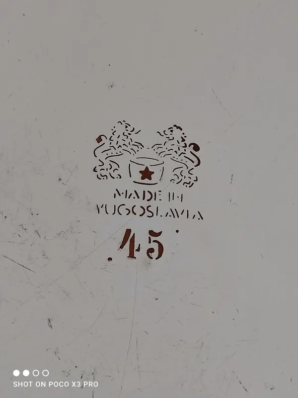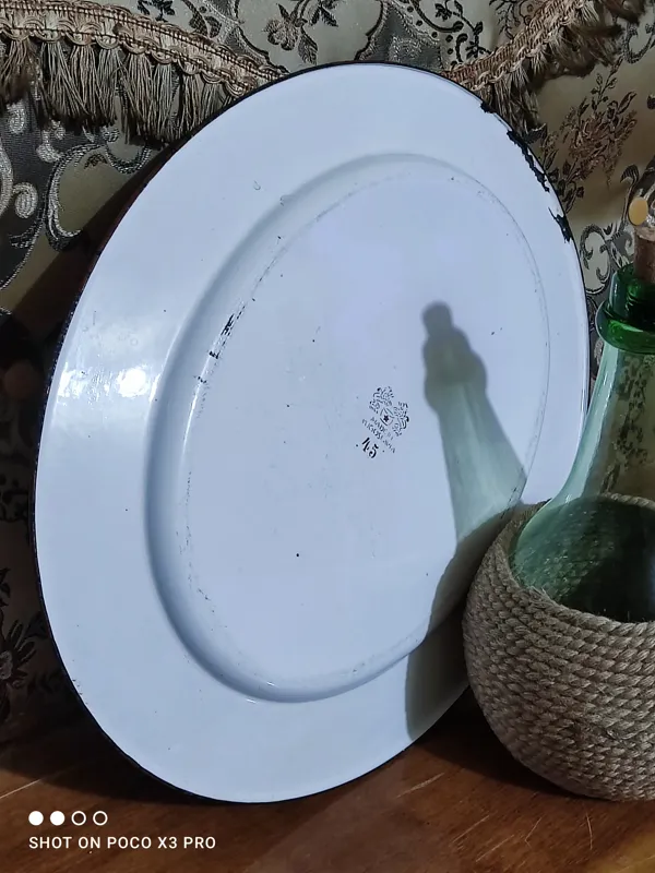 یک عدد سینی لعابی قدیمی سایز بزرگ ساخت یوگوسلاوی محکم و جوندار طول 46 عرض 36 تاریخدار به تاریخ 1945 میلادی قدمتش میشه دقیقا 80 سال