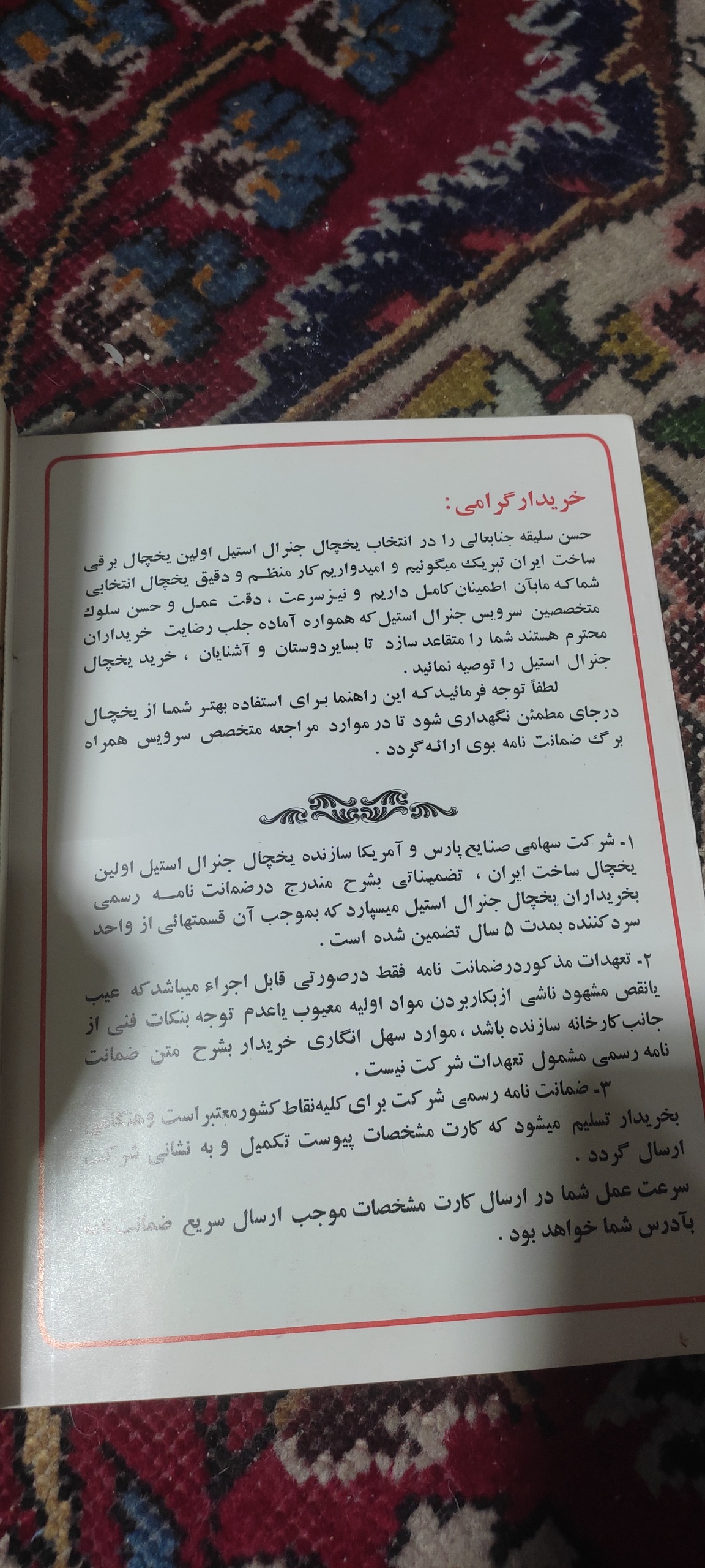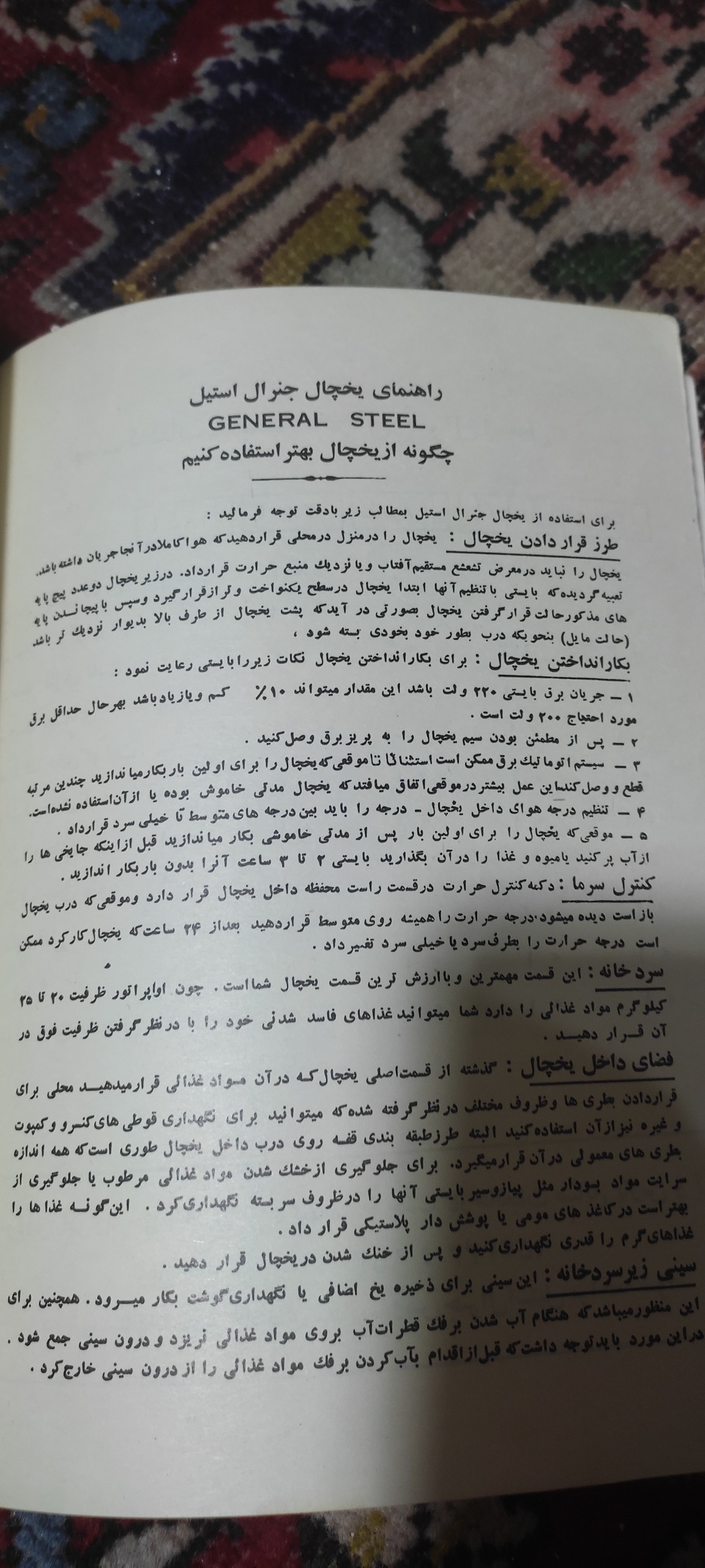 دفترچه راهنمای یخچال جنرال استیل قدیمی