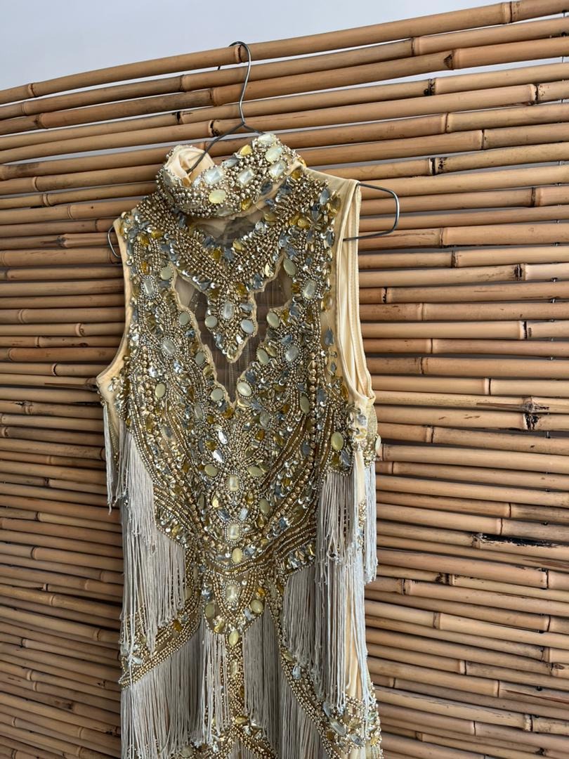 لباس مجلسی پرکار مهره دوزی و سنگ دوزی شده