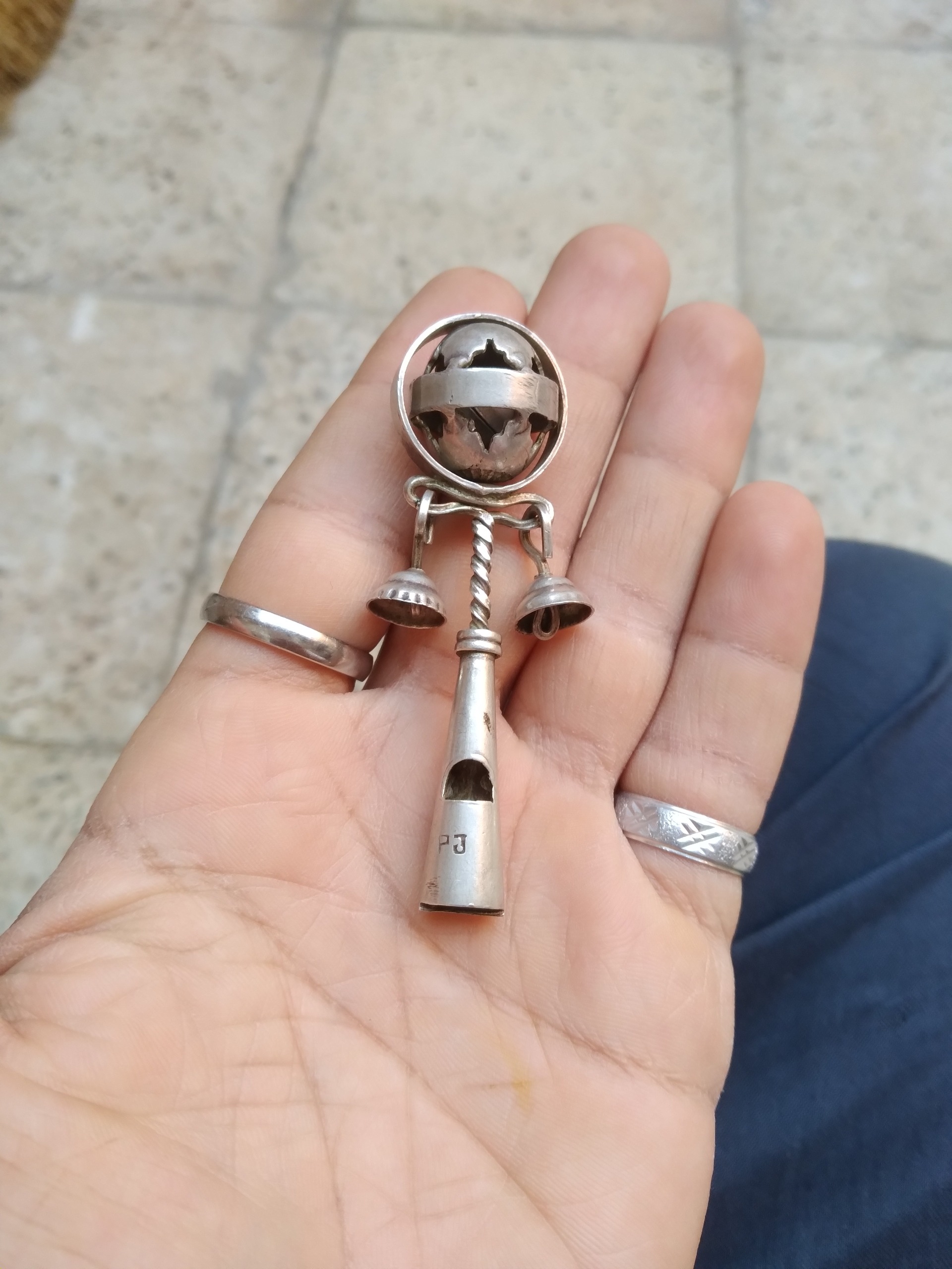 وسیله بازی کلکسیونی که هم سوت هست.هم زنگوله هست تمام نقره ایتالیایی کهنه بدون کوچک ترین عیب کاملا سالم کمیاب کاری بی تکرار و بدون نمونه در ایران که دومی نداره.برای اشراف زادگان قدیم ساخته شده.توی بازار واقعا ناموجوده و لنگه نداره بالای 30ملیون تومن قیمتشه.با ضمانت خرید 5روزه.