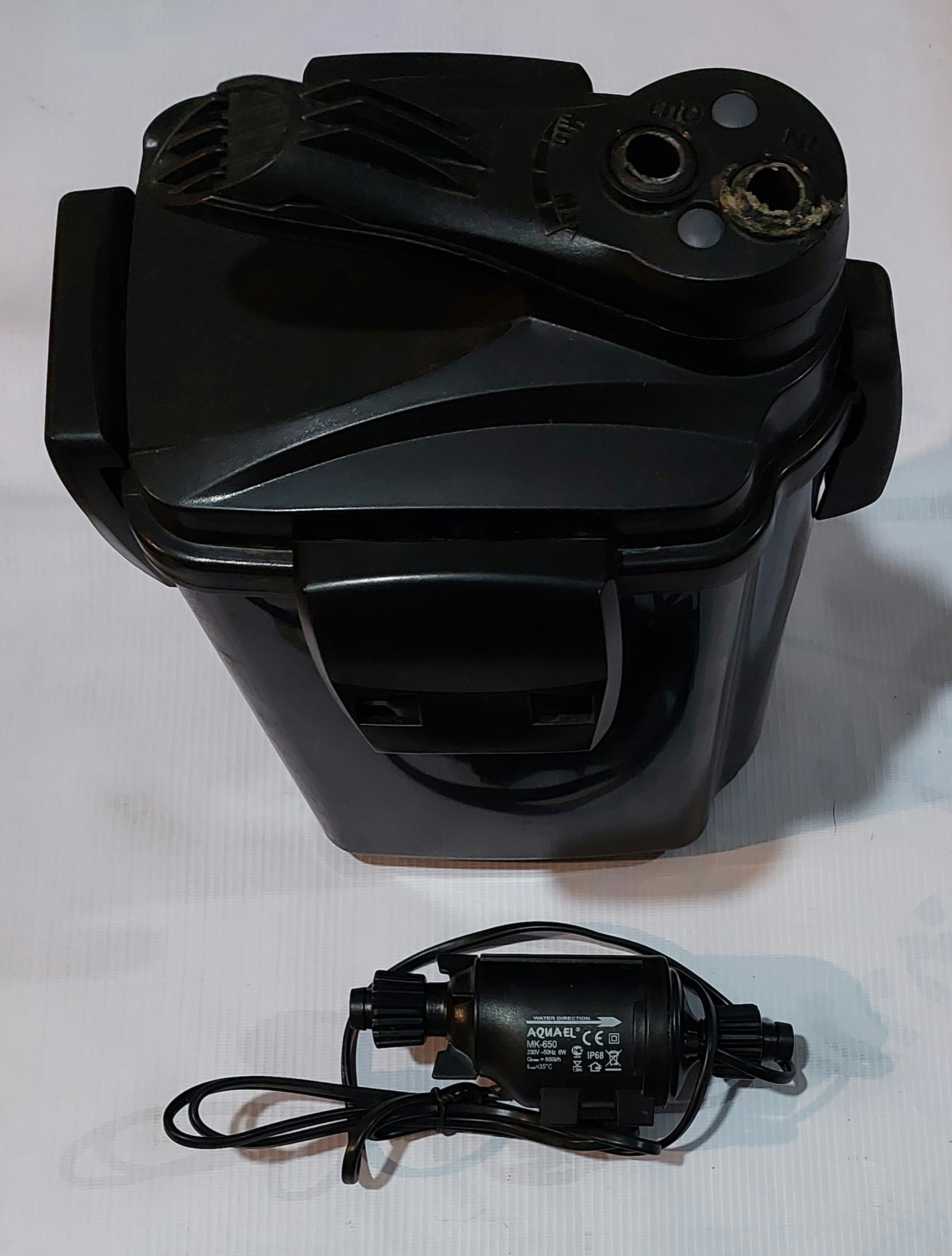 فیلتر سطلی تصویر سوم، همان طور که در تصویر مشاهده می شود، قسمت بالای آن، قسمت اتصالات شکسته است. اما پمپ آن کاملا سالم است.