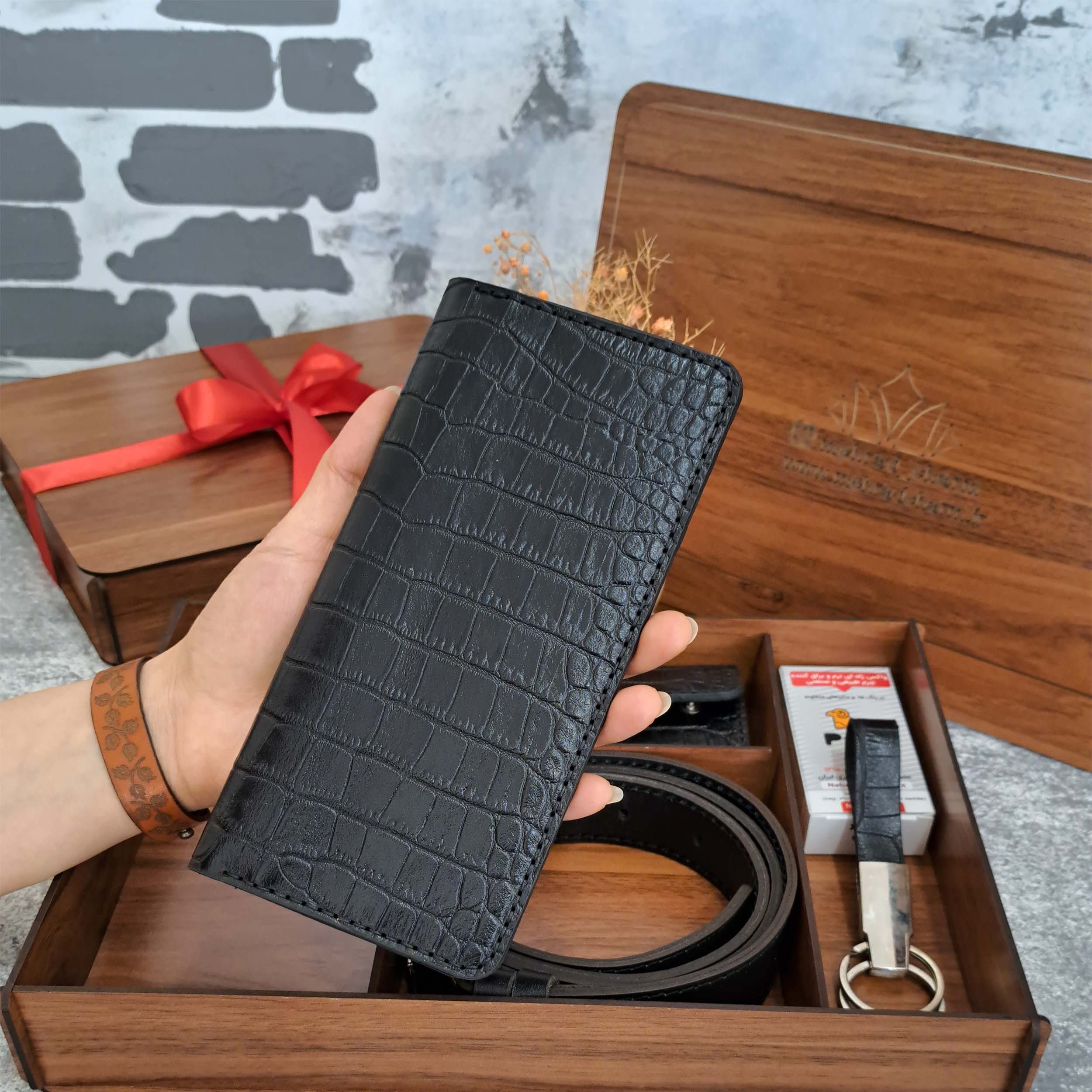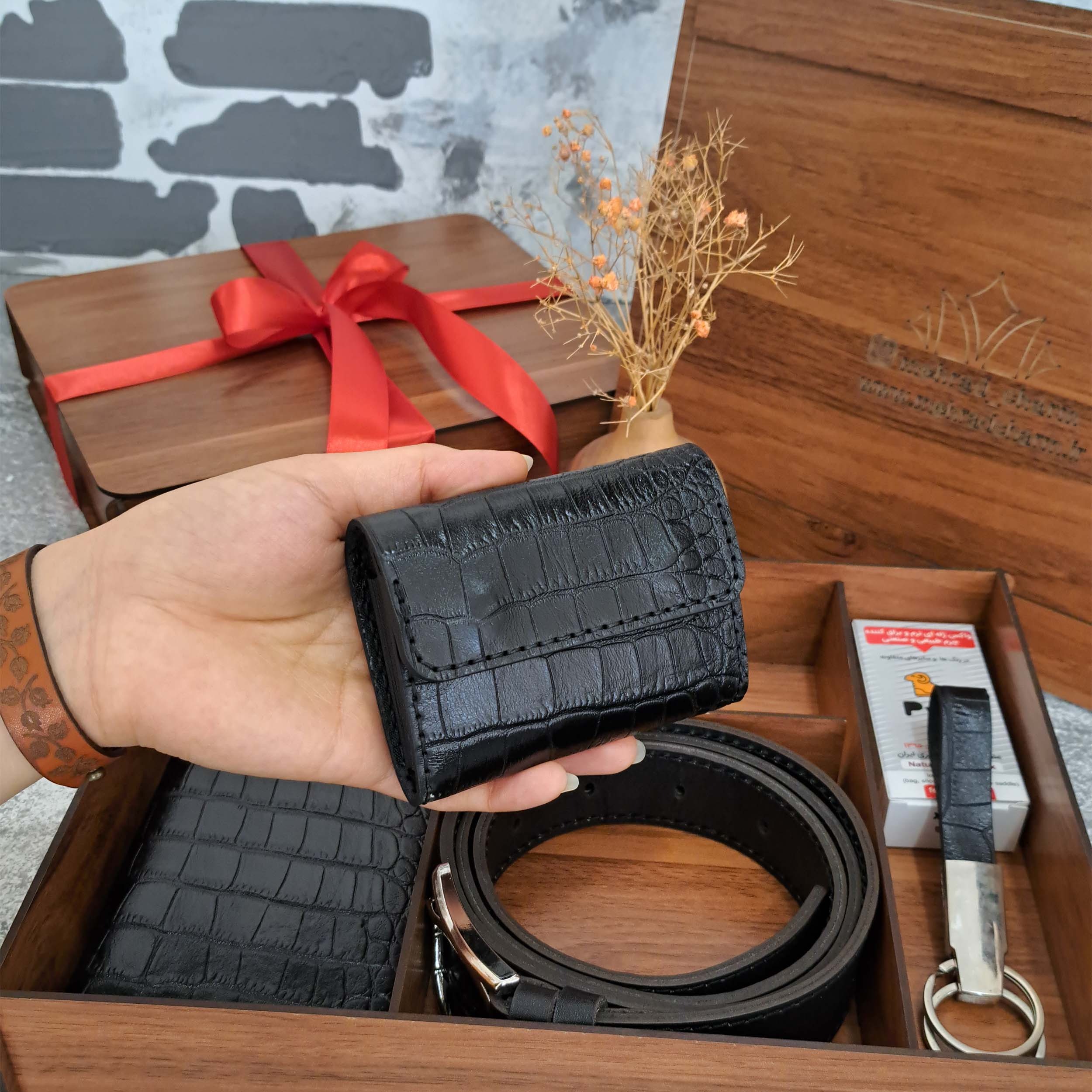 تعداد اقلام همراه ست : کیف پول , کمربند , جاکارتی آکاردئونی , جاسویچی و یک عدد واکس هدیه