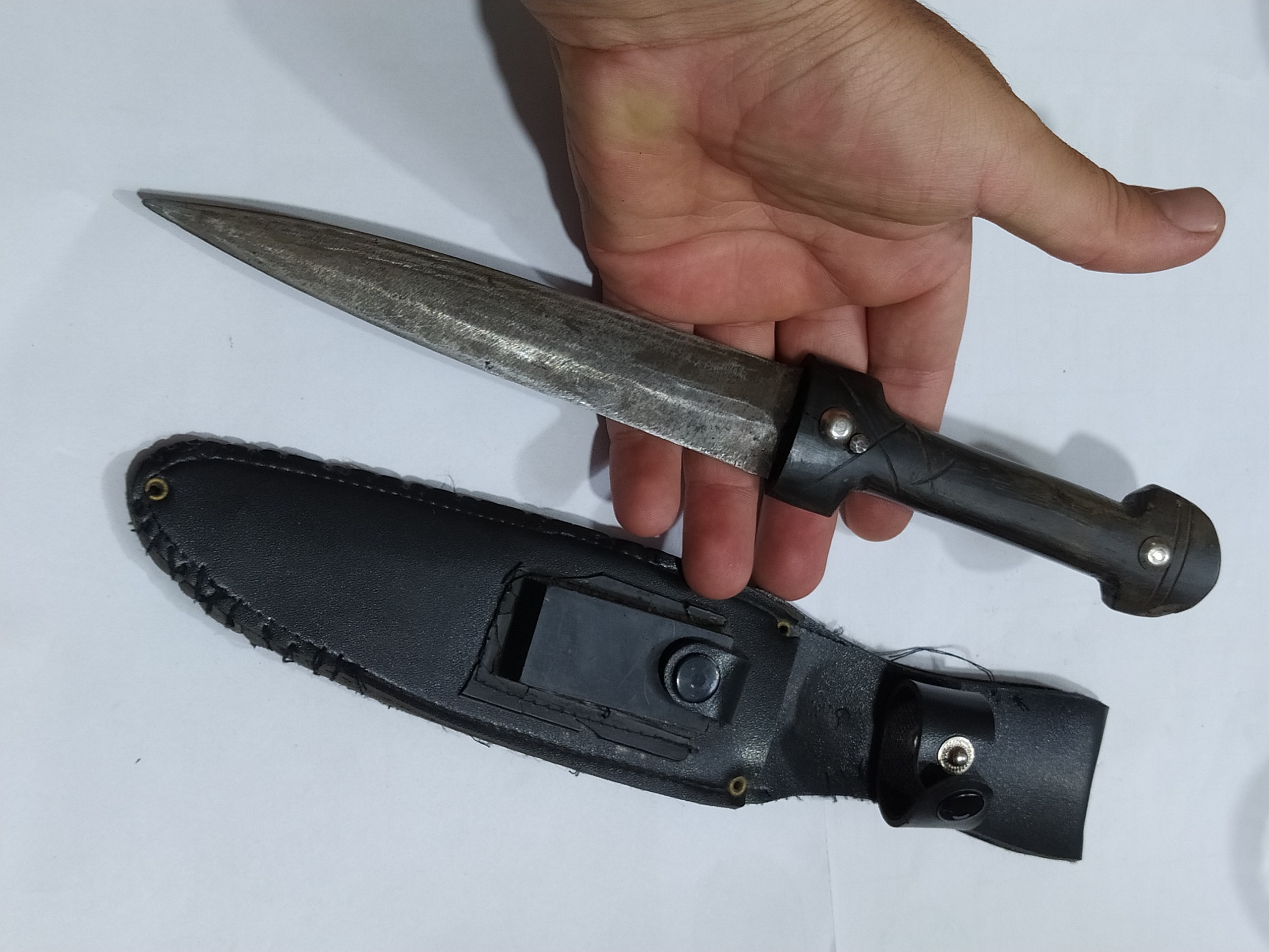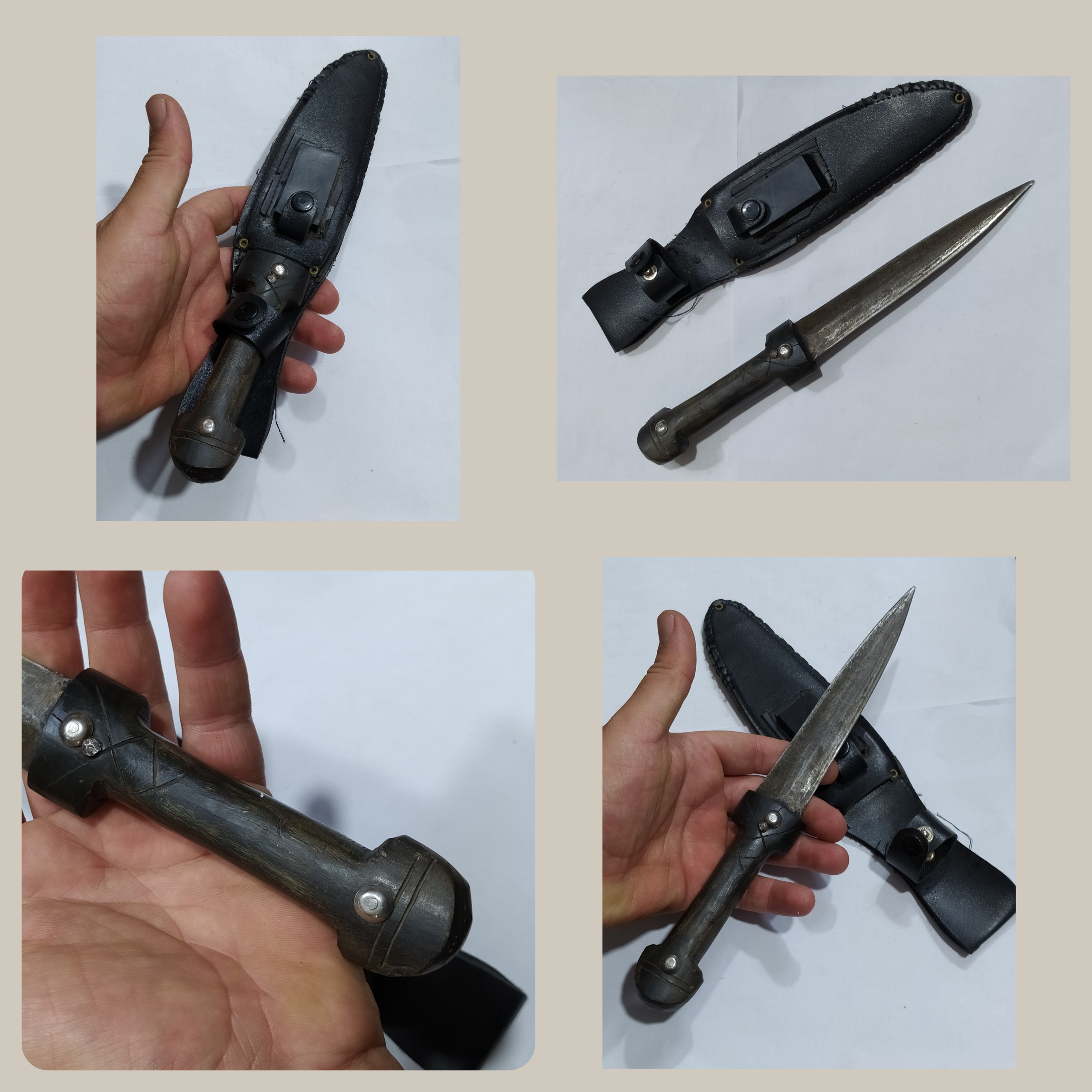 چاقو قدیمی قولادی دولبه دسته شاخ قاجاری