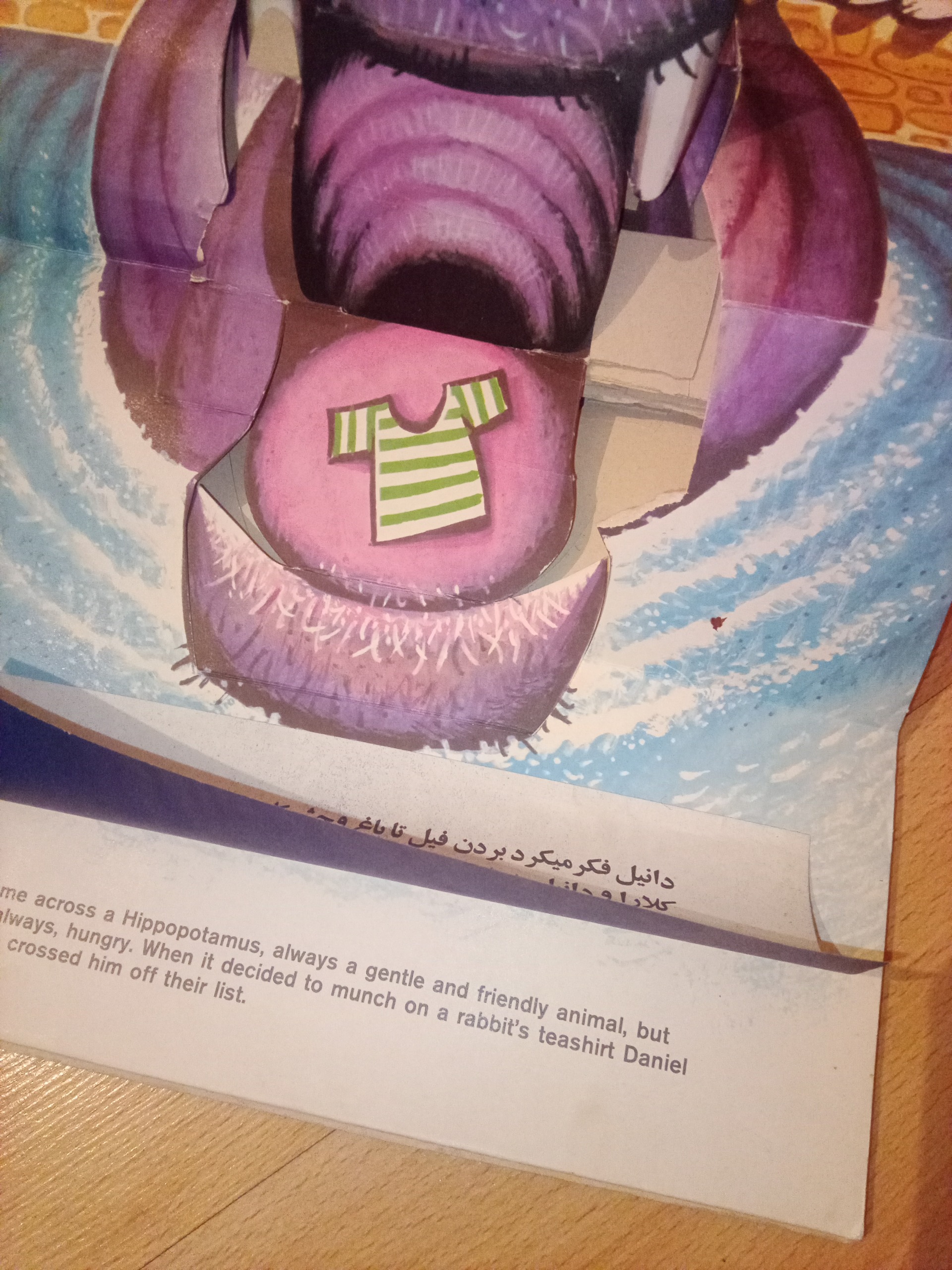 برگردان پارسی با برگه هایی روی متن انگلیسی چسبانده شده