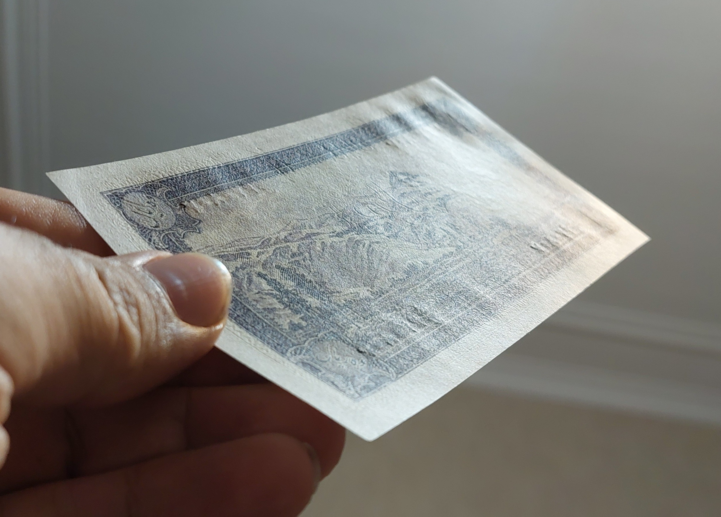 - اسکناس موج خفیف و پولشمار خفیف در یک گوشه دارد.
