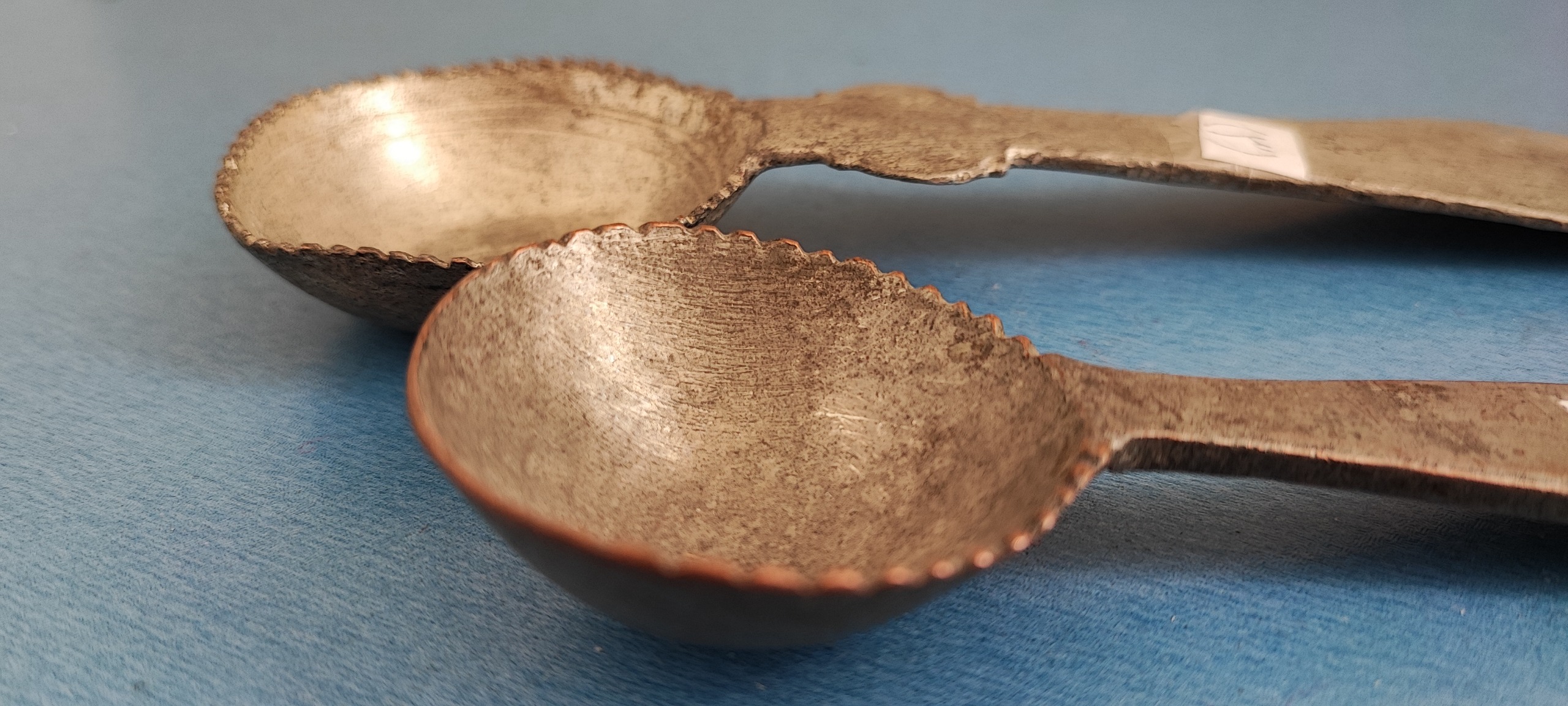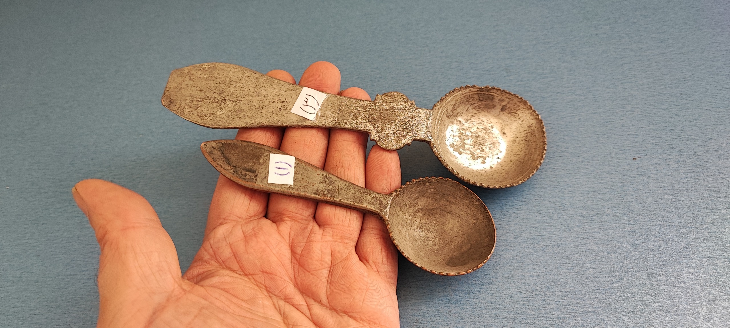 13/5 و 18 سانت طول، قاشق بزرگ کمی کج شده، زیبا و کمیاب و کلکسیونی، دو تا باهم فروخته میشن