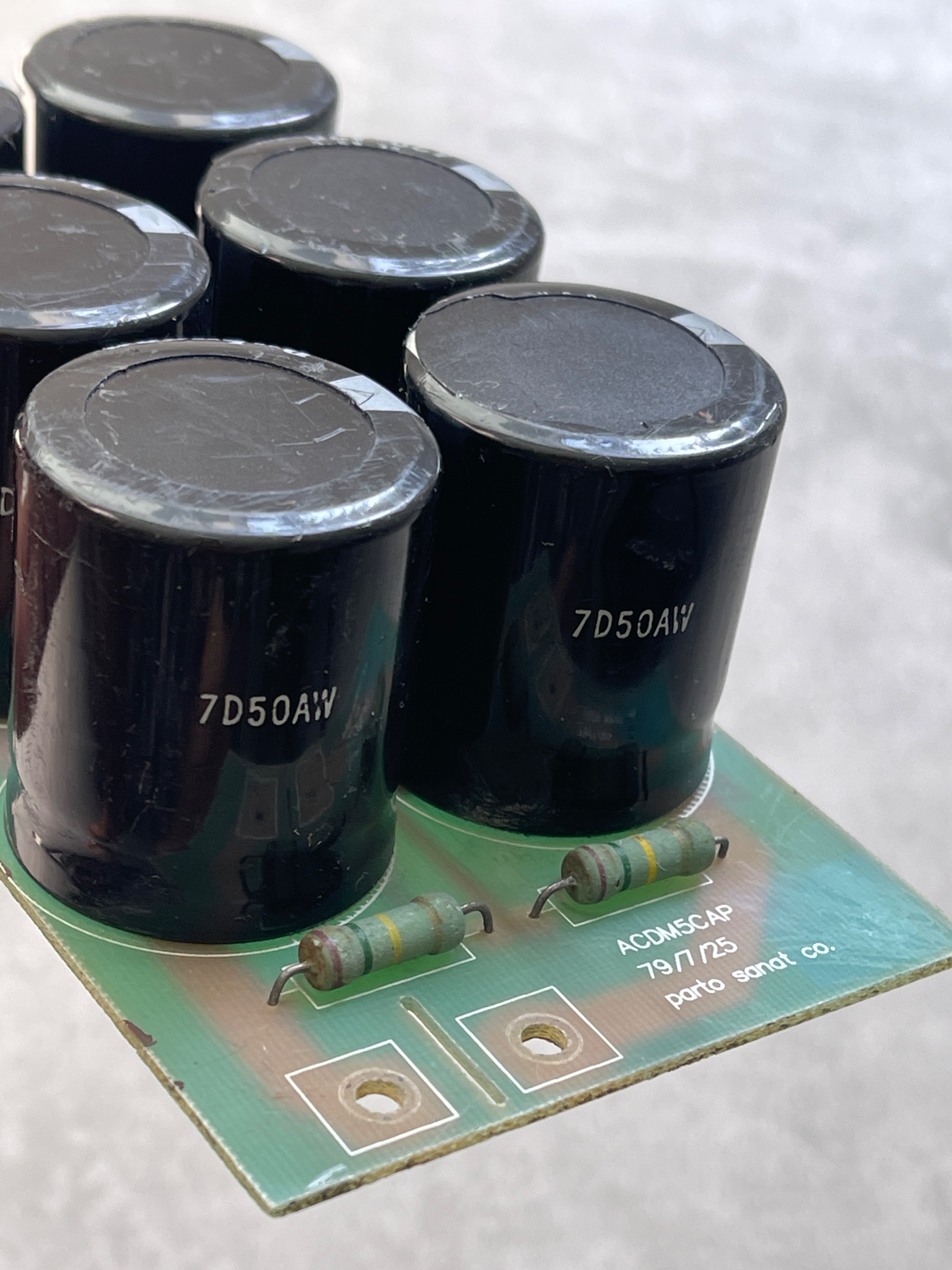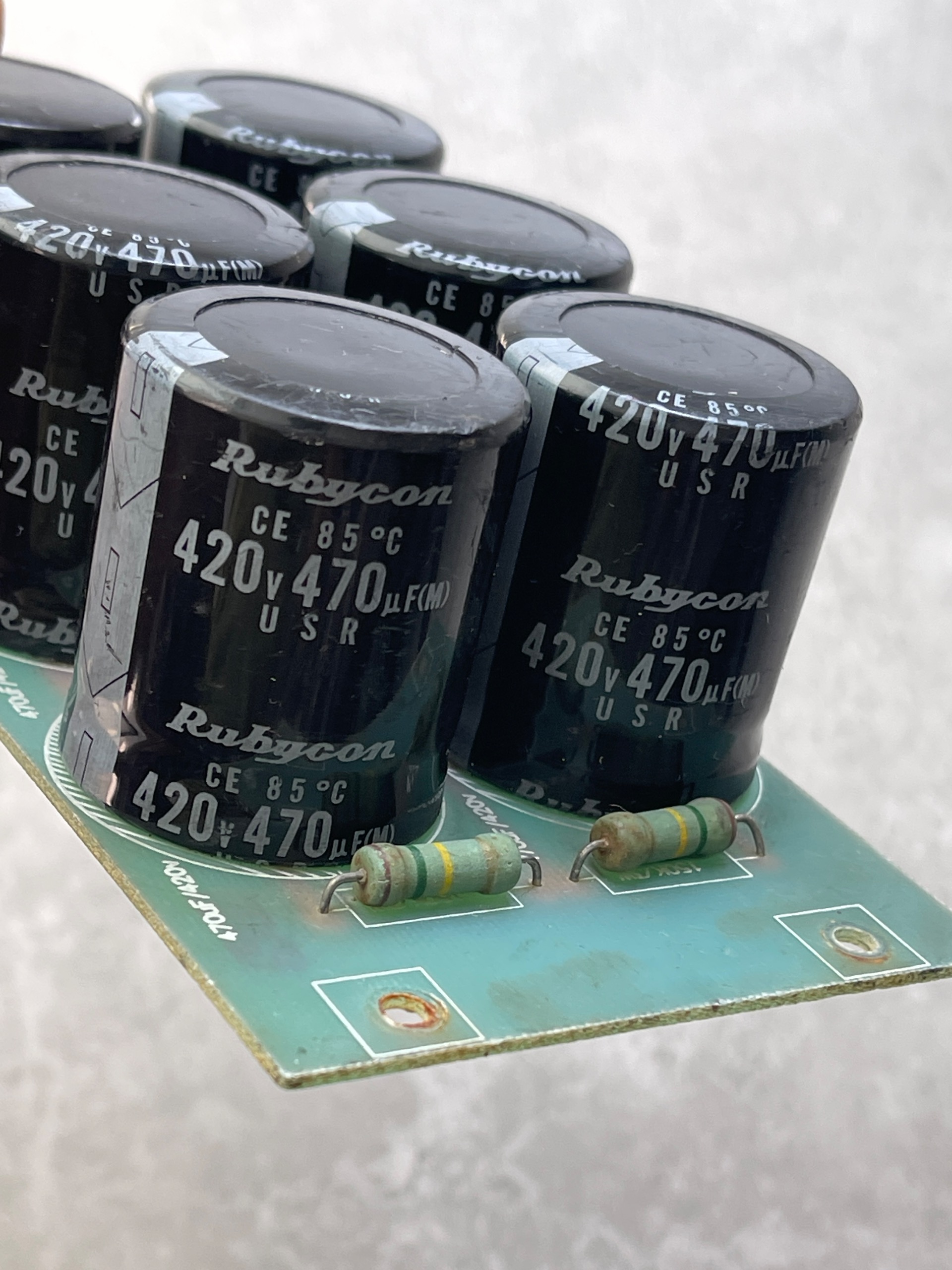 خازنها به صورت دوتا سه تایی موازی و در نهایت سری شده اند که ولتاژ آن میشود 840 ولت و ظرفیت آن 705 میکرو فاراد